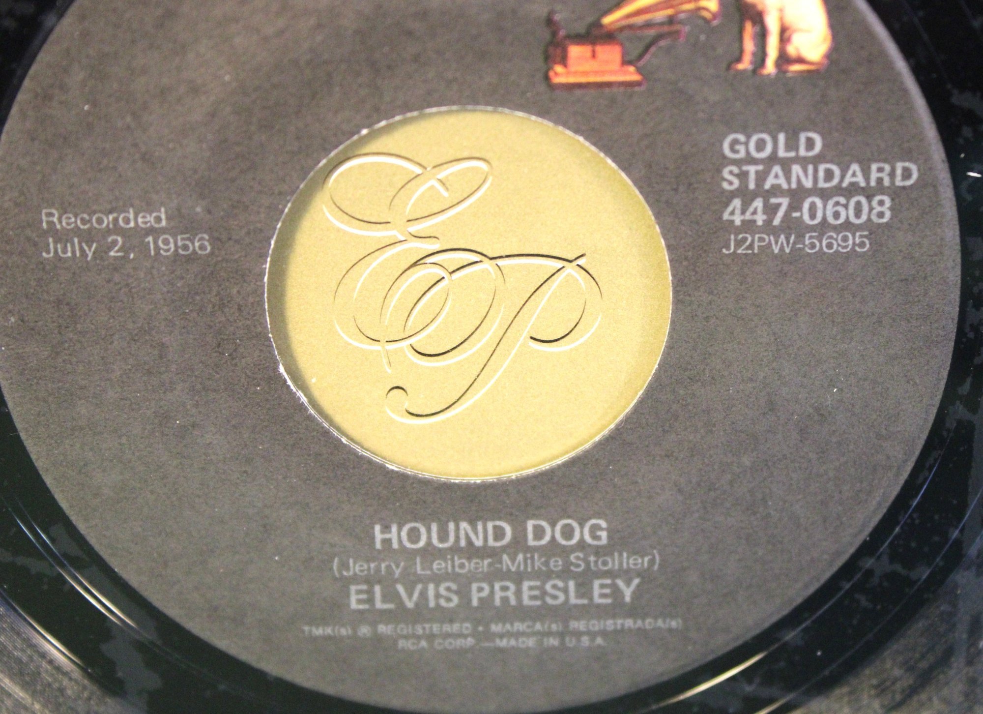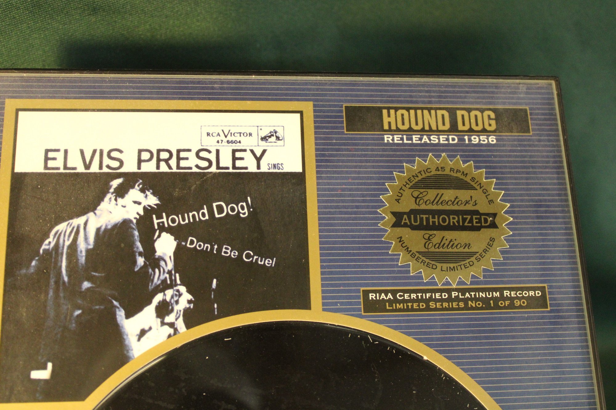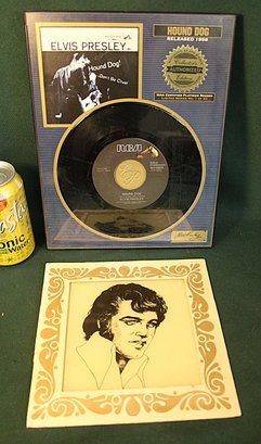 Elvis Plaque W/Hound Dog Record, 8x8" Etching, 4 45RPM Records & St. Vincent Stamps (179)