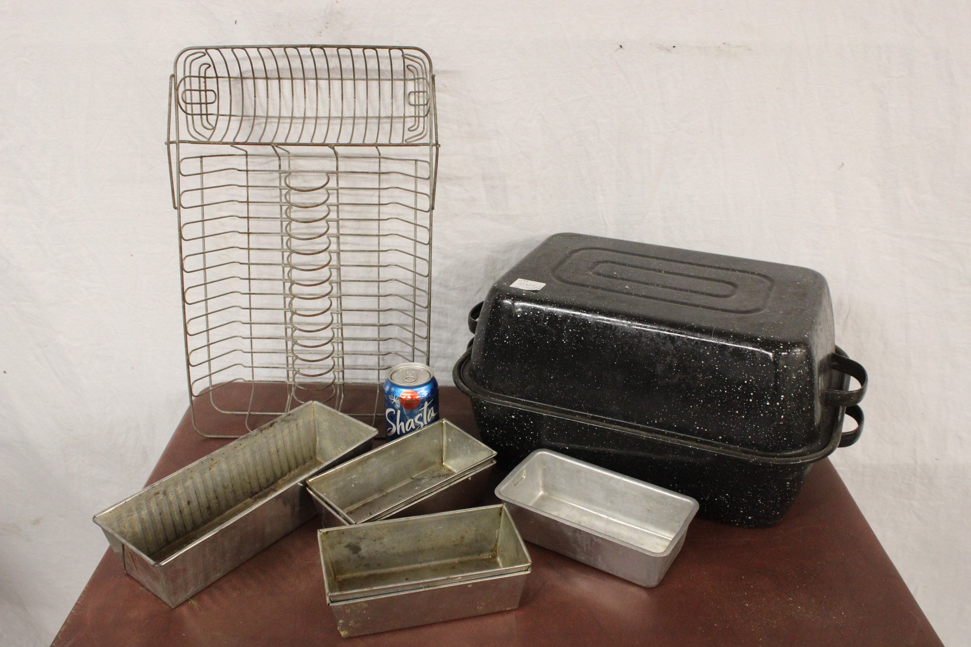 Enamel Roasting Pan & Cover, 18x13x10", 6 Loaf Pans & Dish Rack (330)