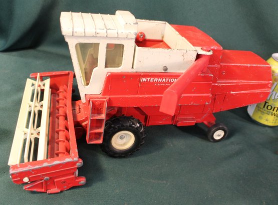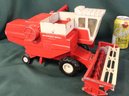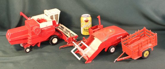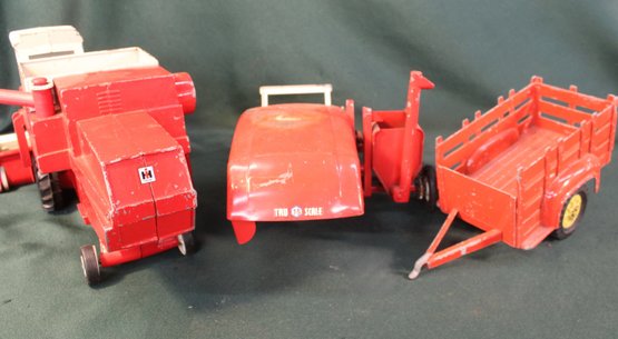 Ertl International 14" Mowing Tractor, Tru Scale 12" Harvester & Hubley Stake Bed Trailer 9" (377)
