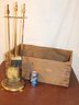 Fireplace Tools, 28"H And Antique Wood Box, 24x15x10"H (411)