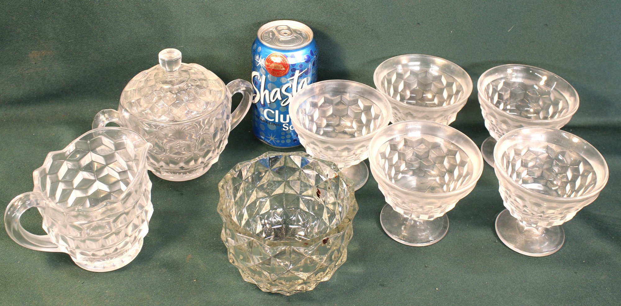 Fostoria American4"d Bowl, Sugar & Creamer, 5 Sherbets (265)