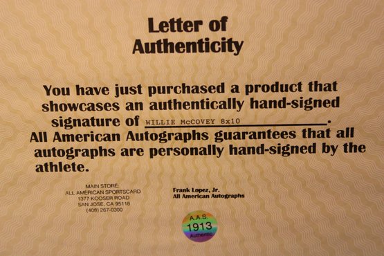 Framed & Matted Willie McCovey Autographed Photo, 13x16.5" (197)