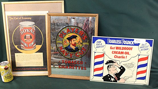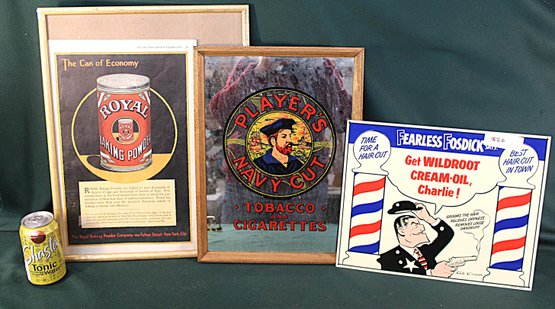 Framed Royal Ad, Framed Players Mirrored Ad, Tin Wildwood Cream-oil Ad (375)