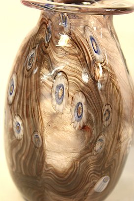 Hand Blown Glass Vase W/Millefiori & Polished Bottom, Signed Drumm '09, 5.5"H (410)
