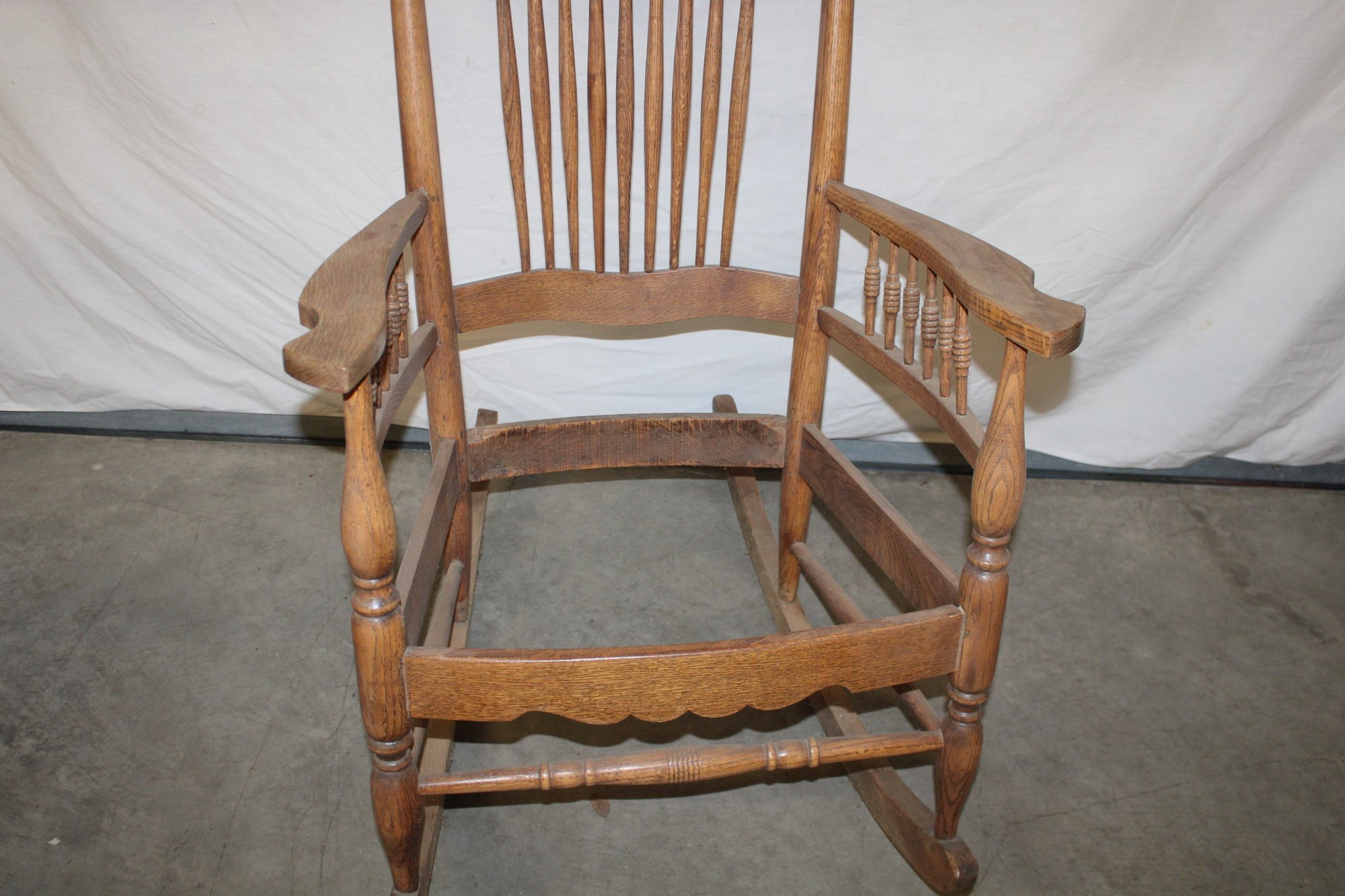 Large Antique 1900s Pressed Back, Spindled Arm Rocker, Ex. Cond., Needs Seat & Upholstery (250)