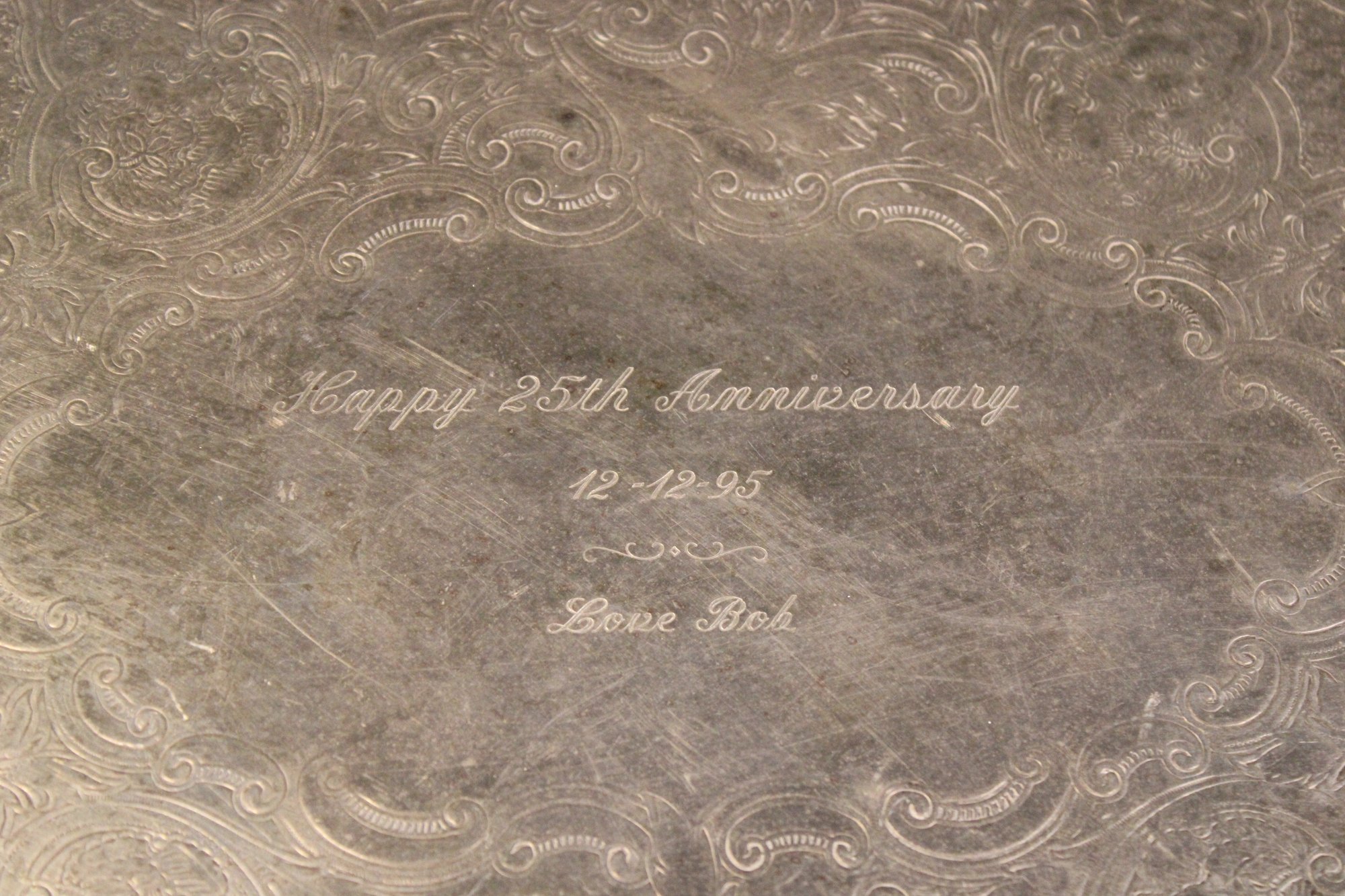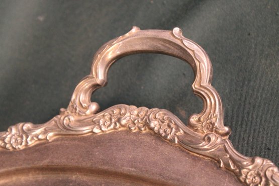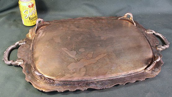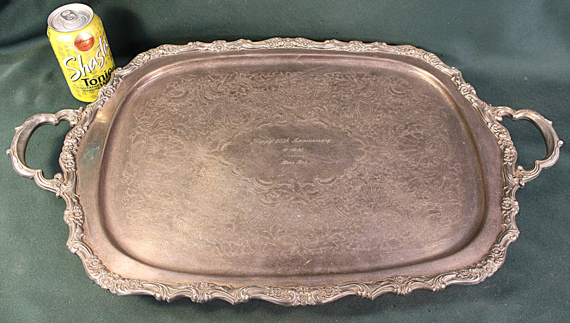 Large Silverplate Serving Tray W/Handles & Feet W/Inscription, 25x14" (378)