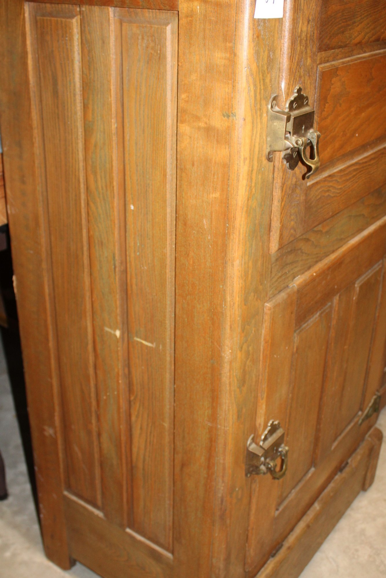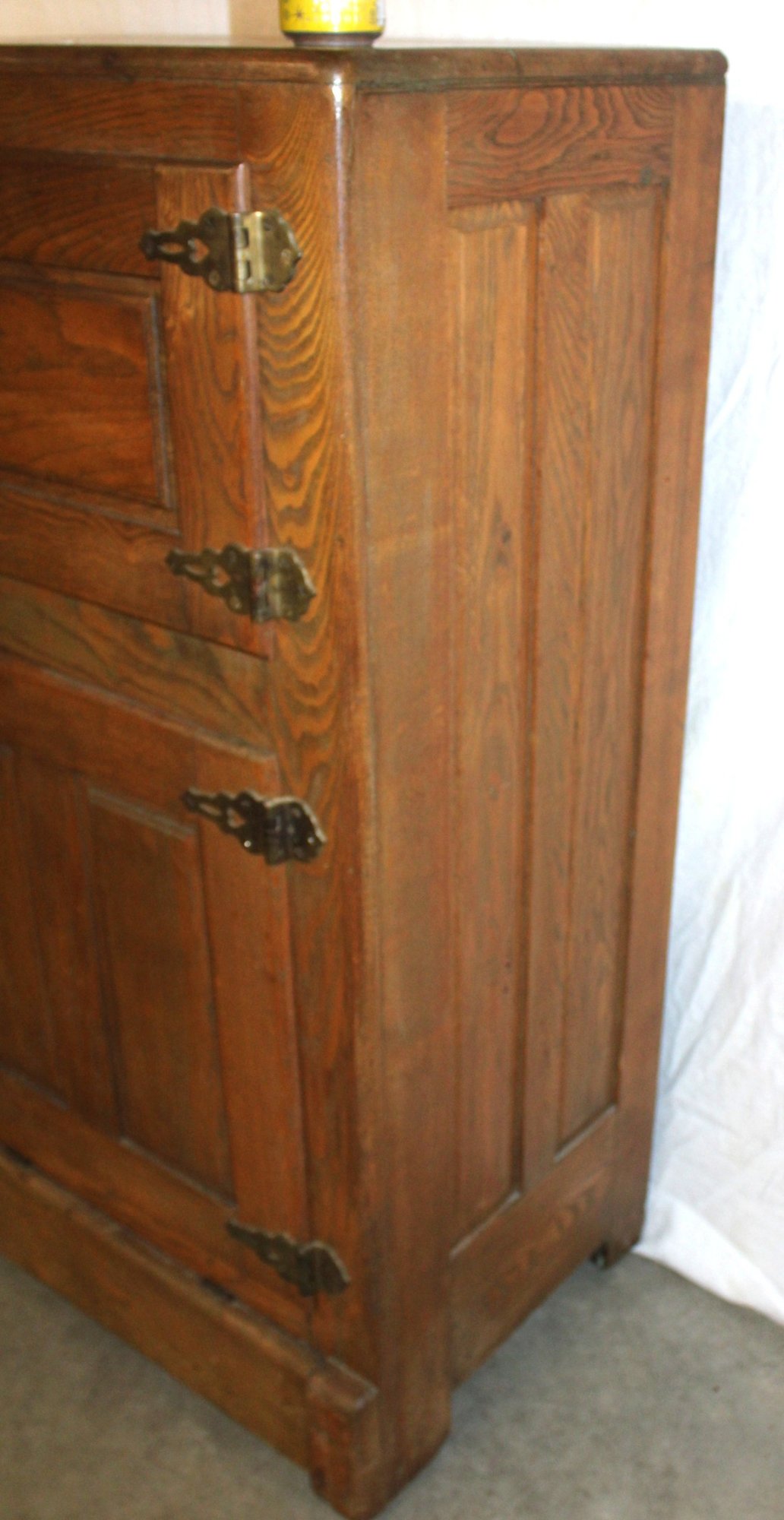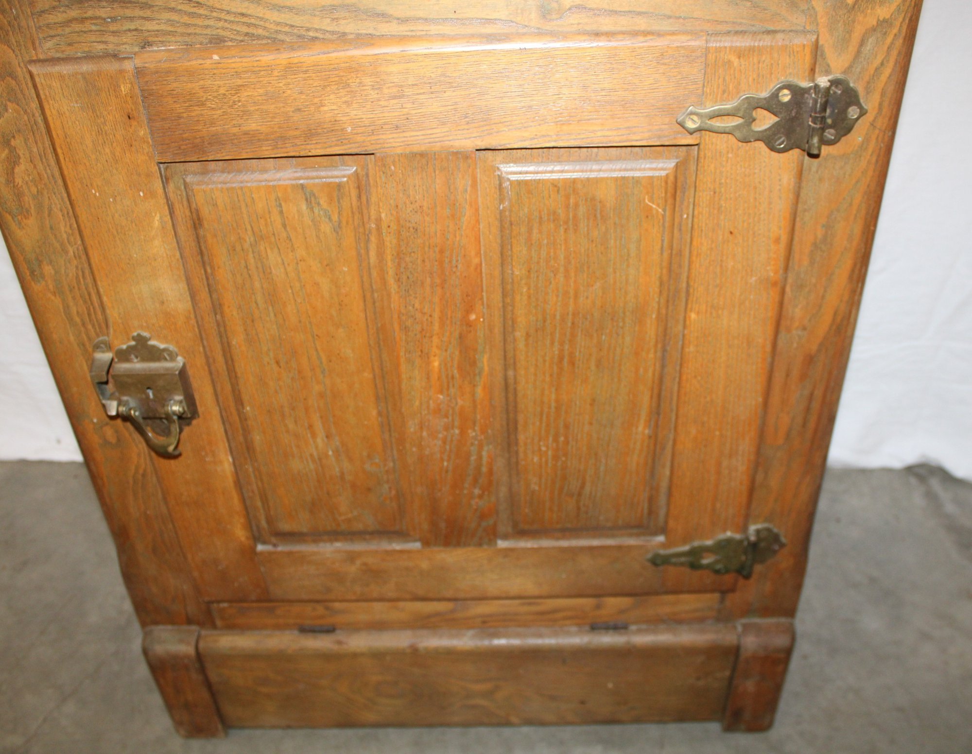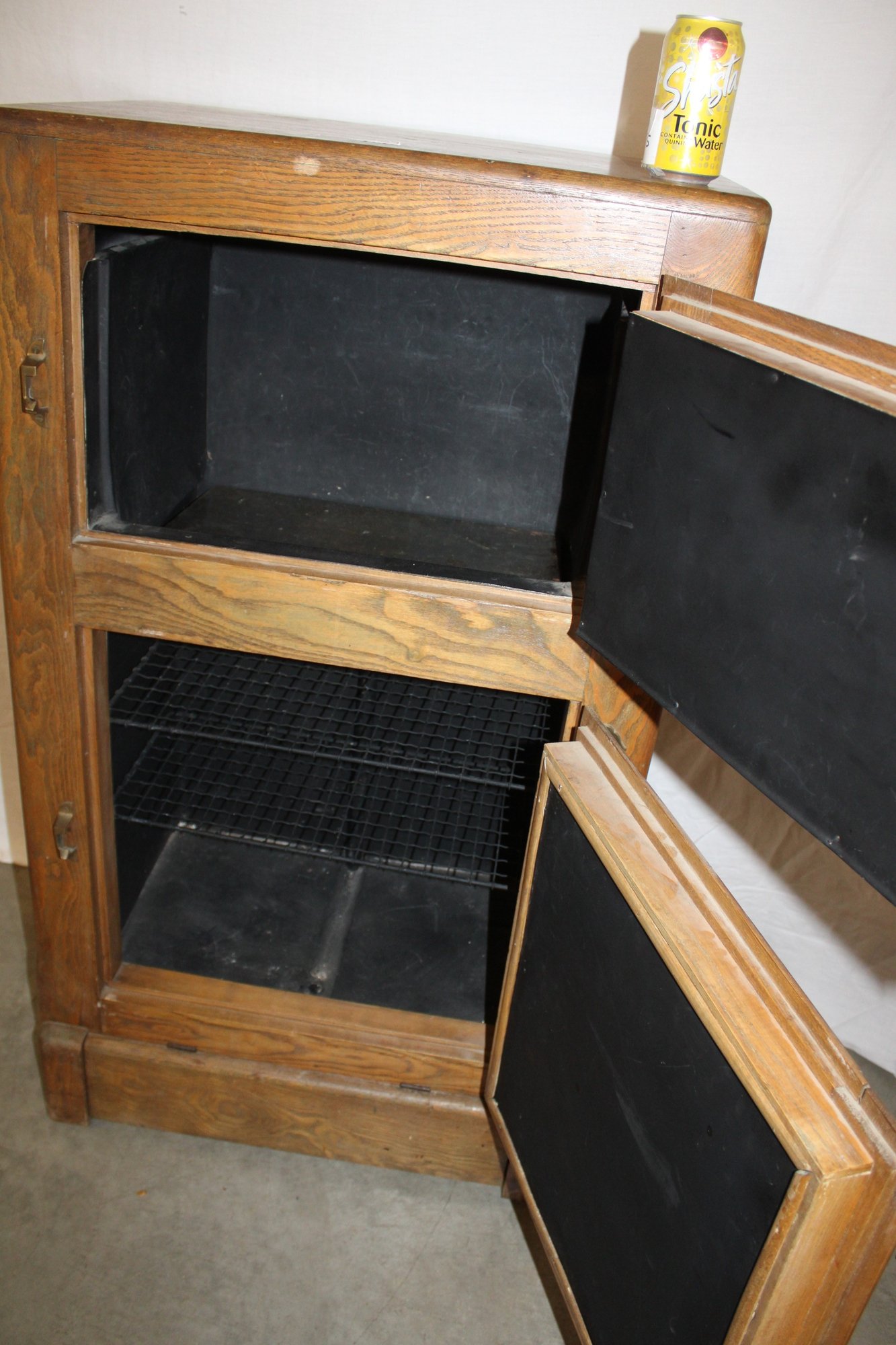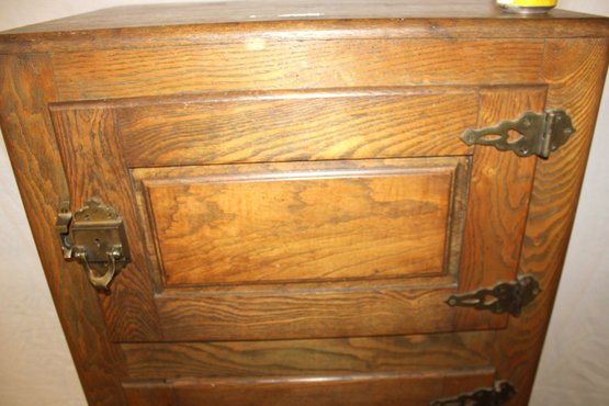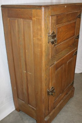 Mint Antique Oak Ice Box, 2 Door, Raised Panel, Orig. Hardware, Locking (No Key), 26x17x40H (87)