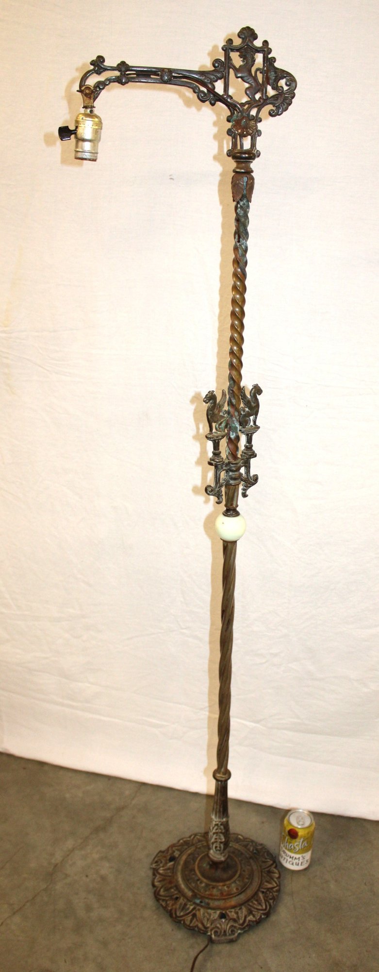 Ornamental Antique Iron And Onyx Floor Lamp, 61h, Needs New Socket (75)