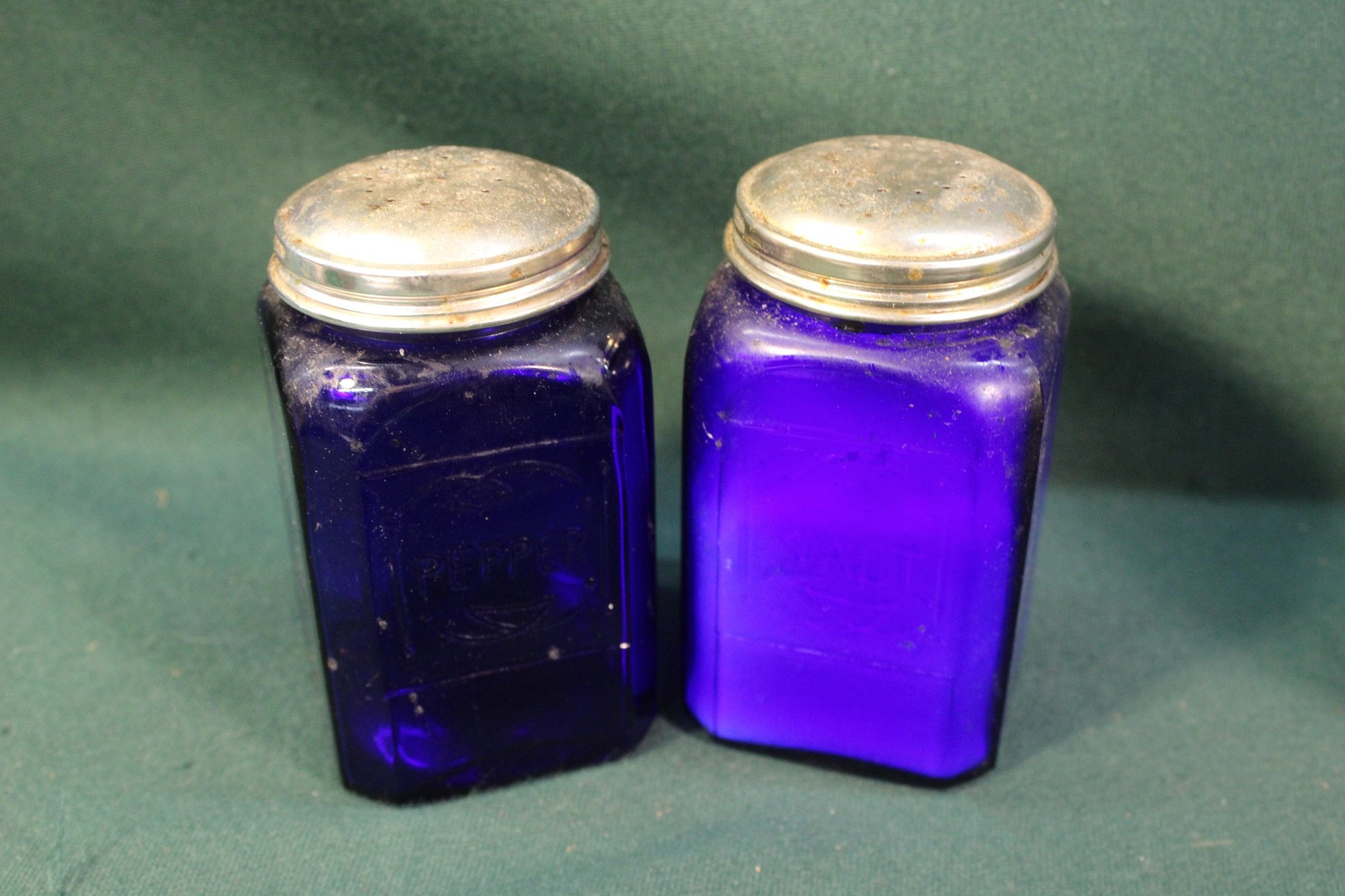 Pr. Cobalt Salt & Pepper Shakers, 2 Belt Buckles (Chambers Nevada Silver & Forest Service) (214)