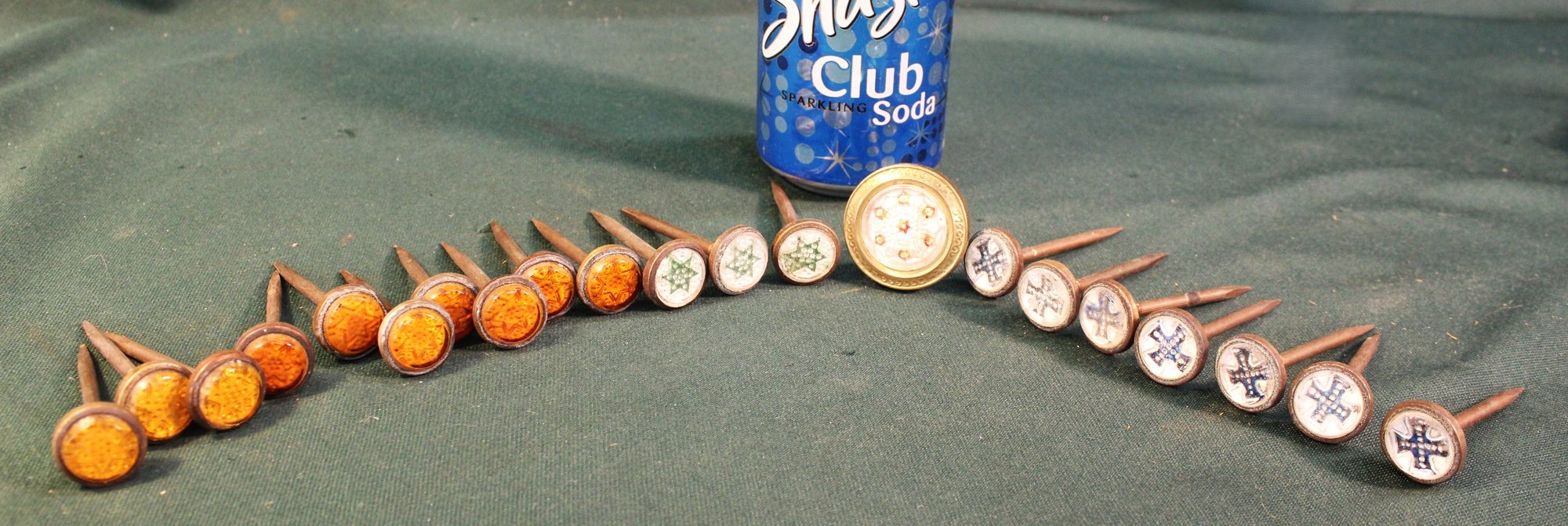 Rare 21 Sulphide Glass Picture Hangers/curtain Tie Back Nails (371)