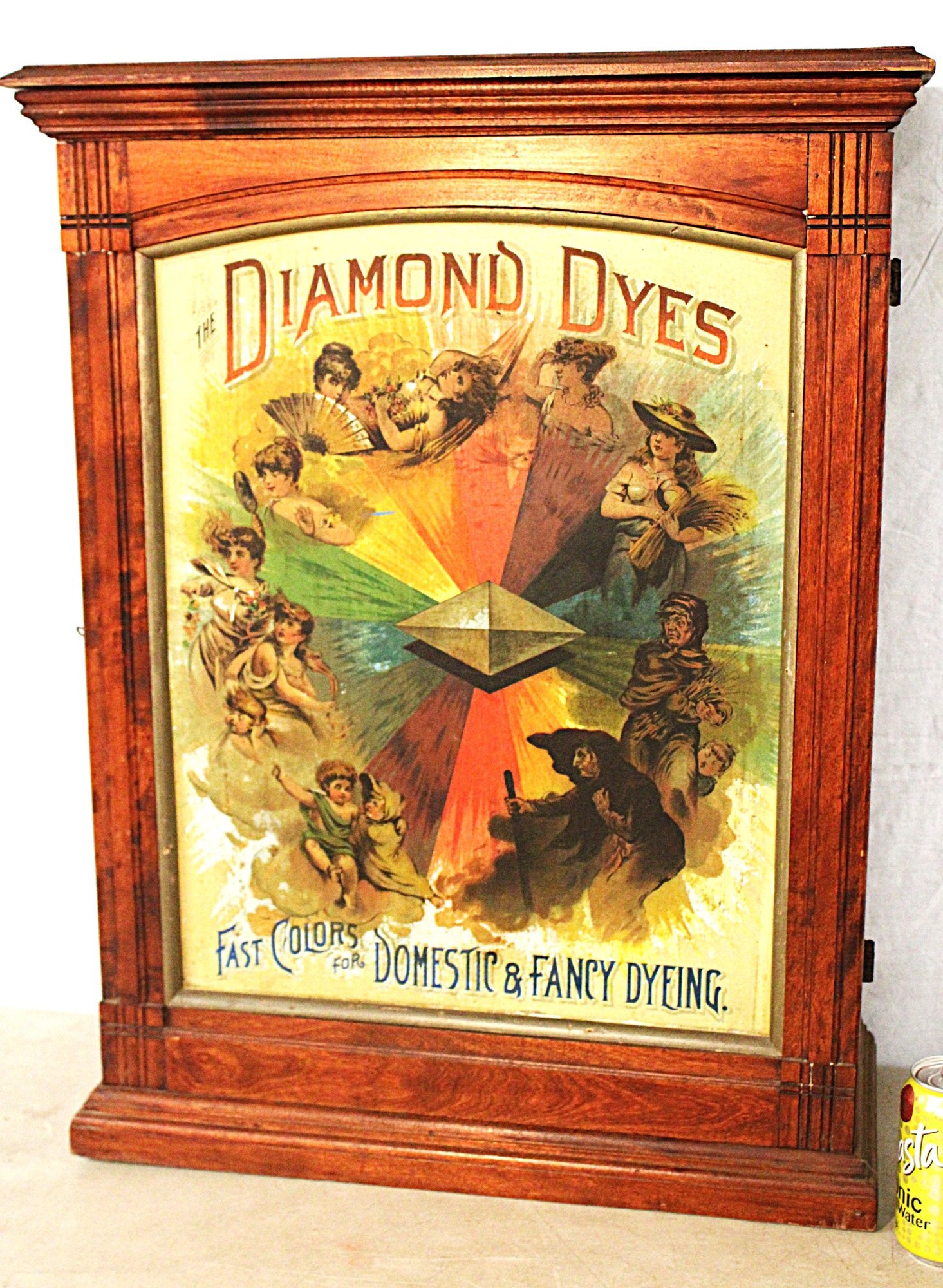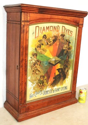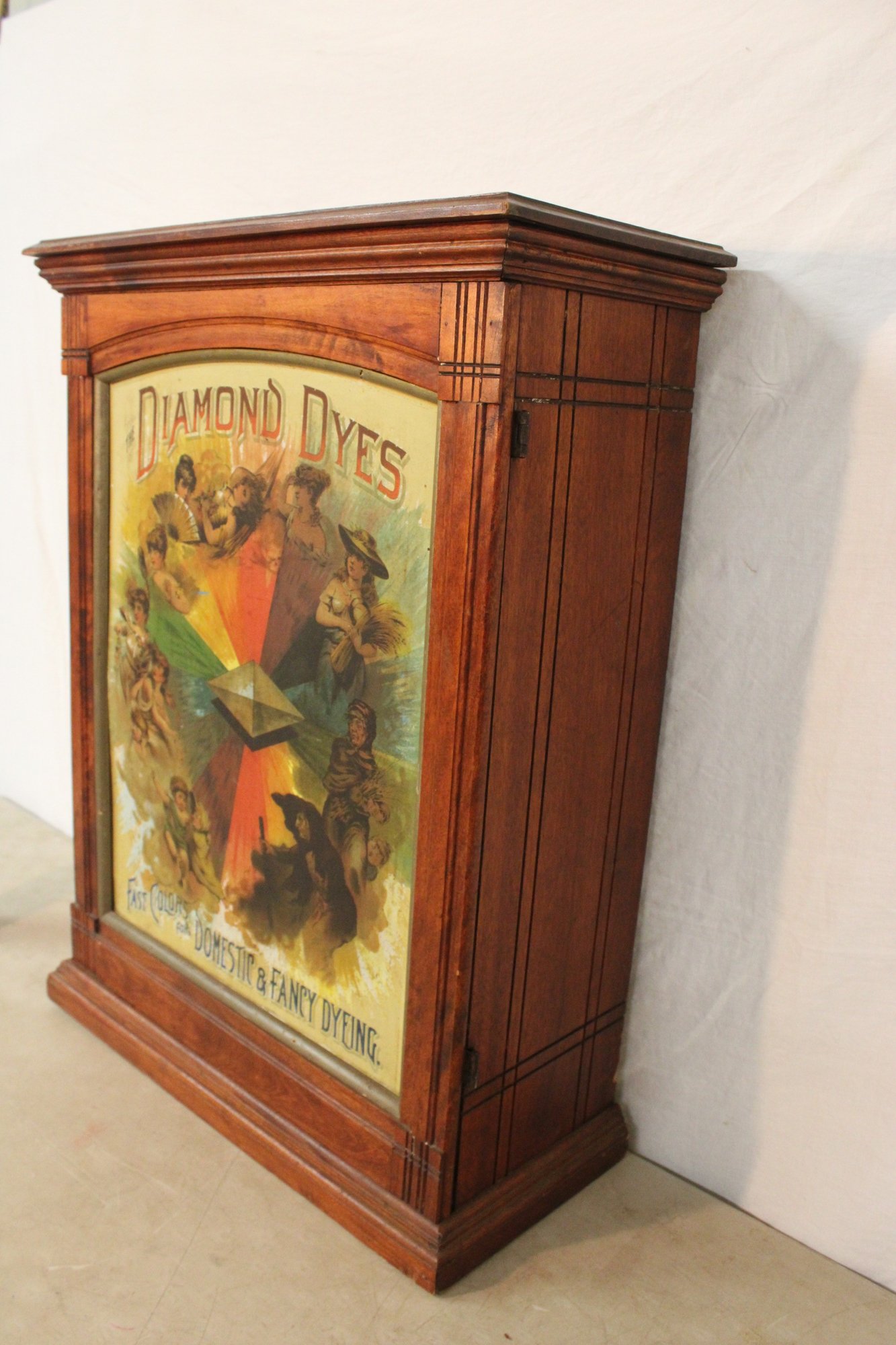 Rare Antique Diamond Dyes Cabinet W Cubby Hole Interior, 23x10x30"H (137)