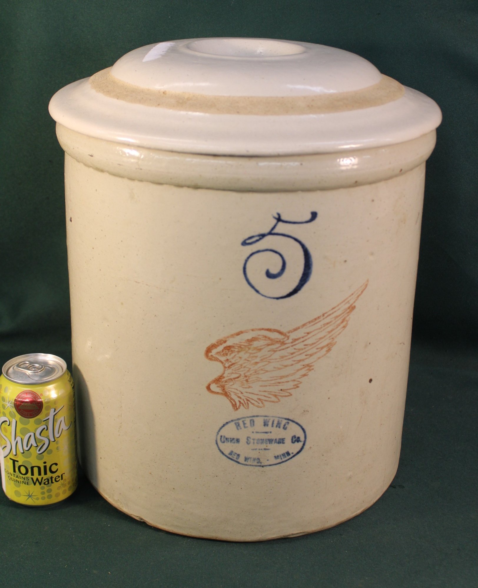 Red Wing 5 Gallon Crock W/Lid, Hairline Crack, 13H (47)
