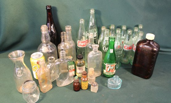 Group Of Misc. Bottles Including Coca Cola, Inkwell, Medicinal, Etc. (329)