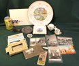 Boot from Chicago International Expo, 1893, Golden Gate International Expo 1893 postcards, Santa Land ashtray, & Paris salt by Limoges, 50 postcards from Chicago Expo1934, 24 postcards from 1915 SF,