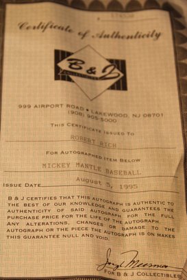 Signed Mickey Mantle Baseball W/COA (Unverified) (391)