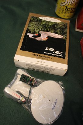 Star Trek & Star Wars Figures-1991&1994 Lighted Hallmark, 2000 SW Fig, 1996 Diecast & 1993 USS Enterprise(248)