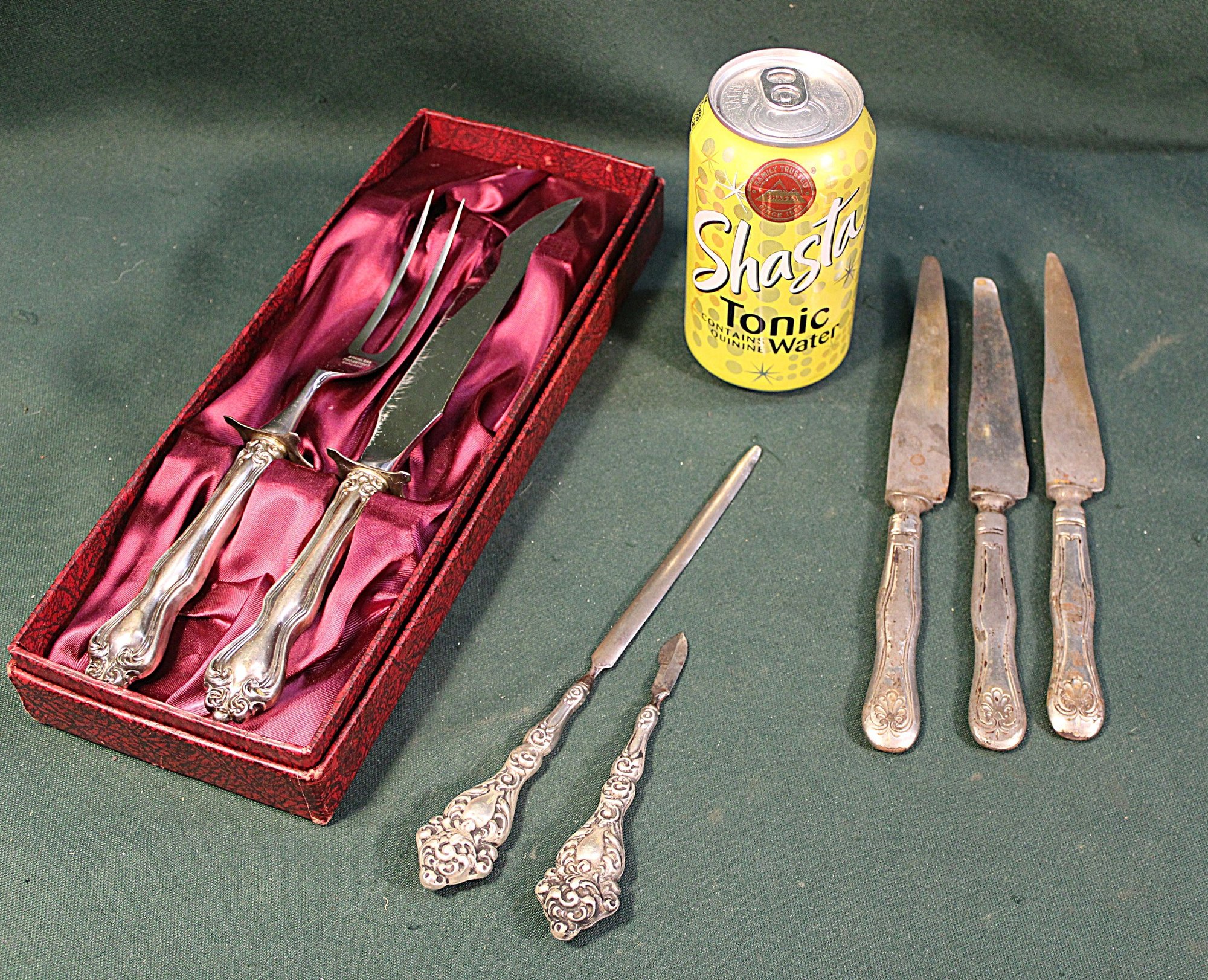 Sterling Letter Opener & Cuticle Knife (1ozt Adjusted For Blades), Carving Set & 3 German Knives (42)