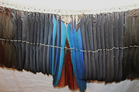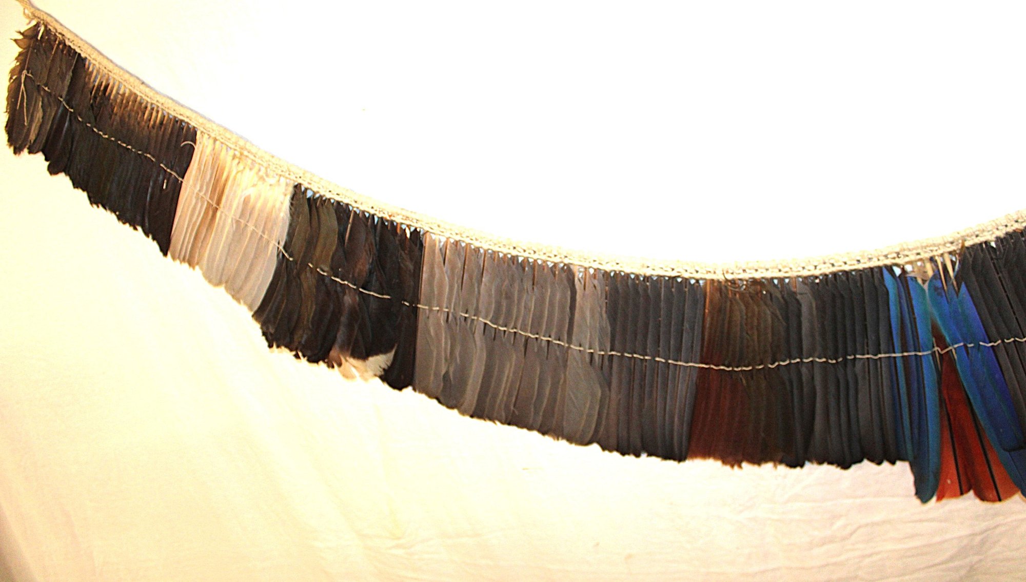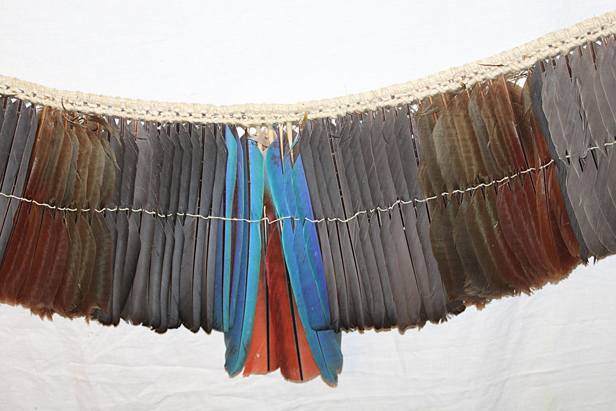 Intricate Feather Headdress (South American?), 90" Long , Excellent Condition (224)
