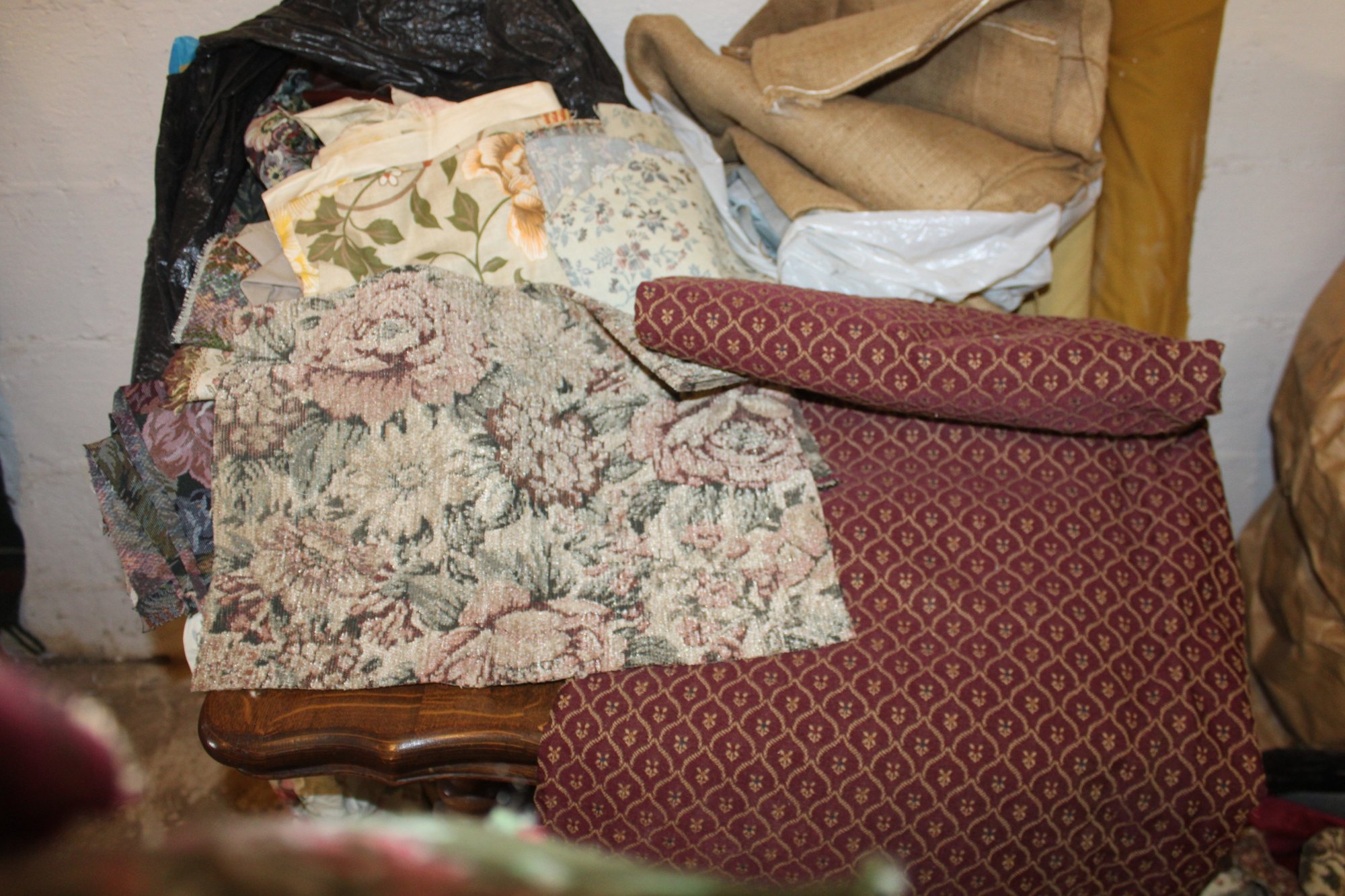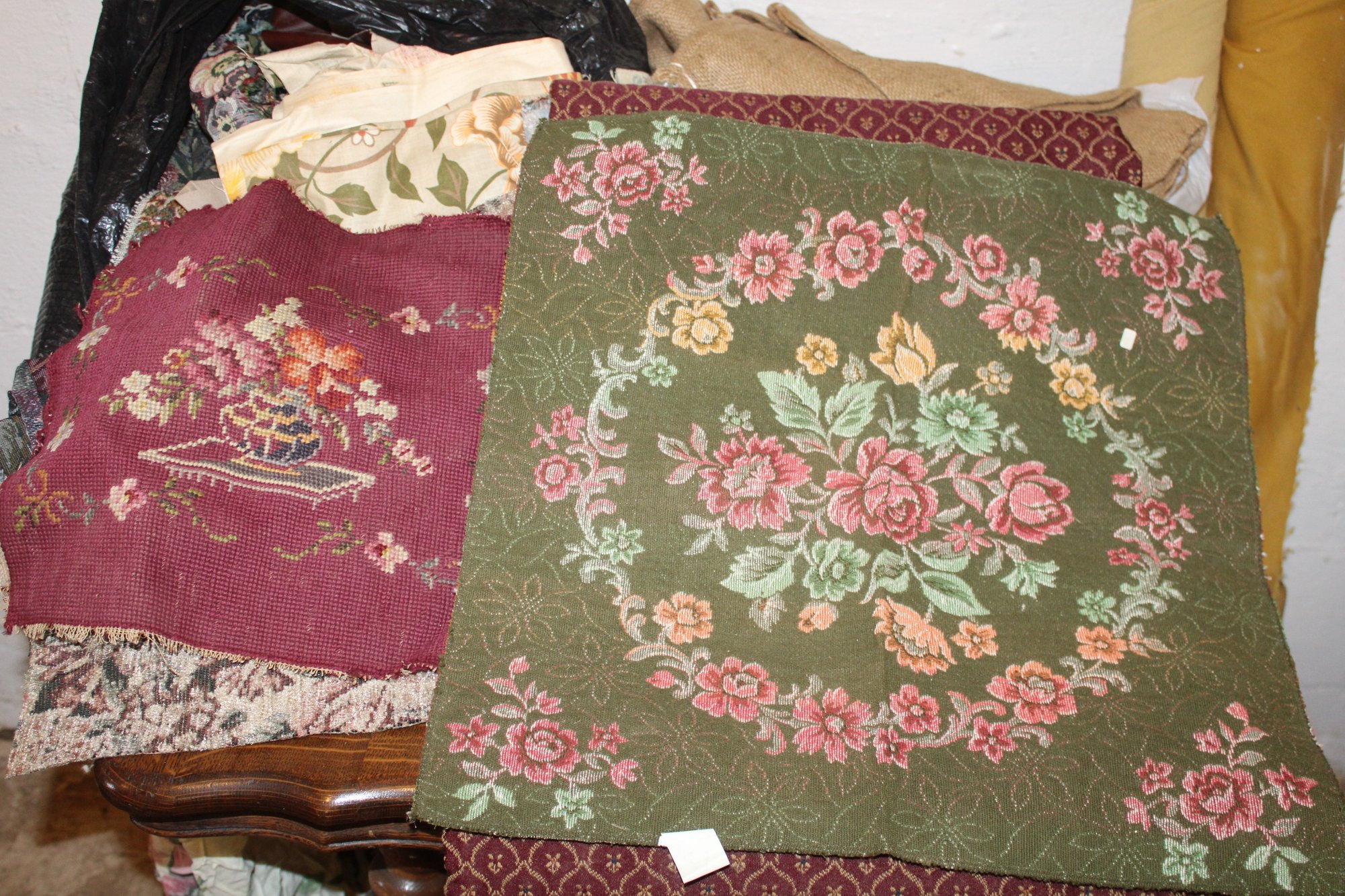 Upholstery Material, Burlap, Seat Covers, Scraps & Cotton Batting (362)