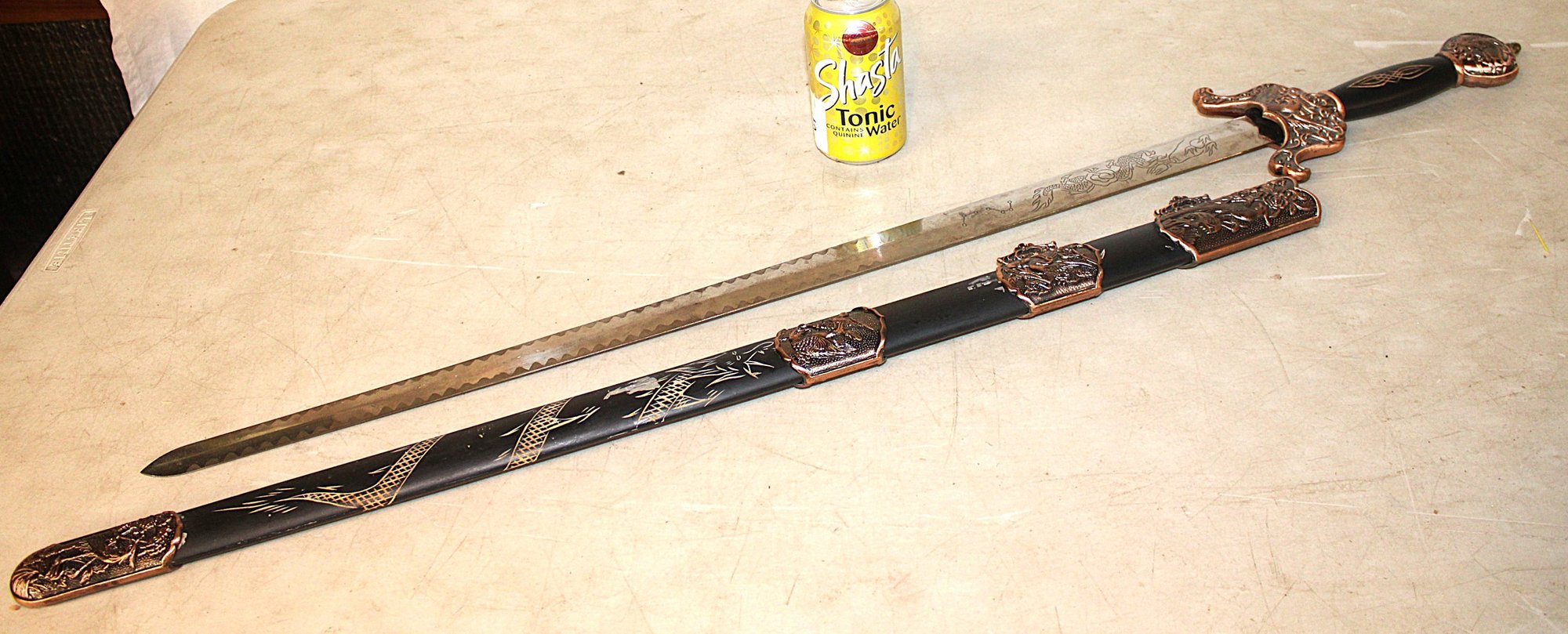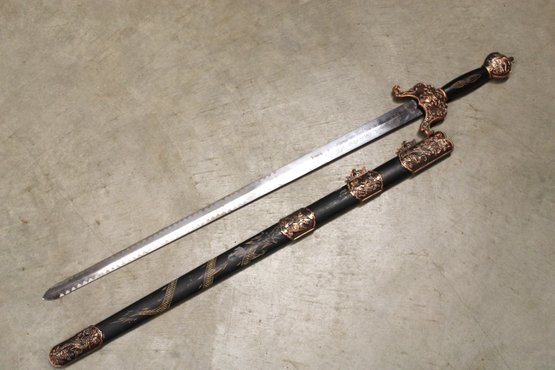 Vintage 39" Long Ceremonial Sword In Sheath (243)