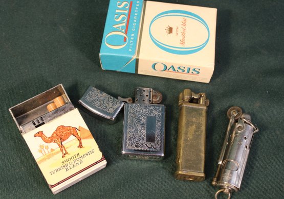 Vintage 4 Lighters & Oasis Cigarette Box (155)