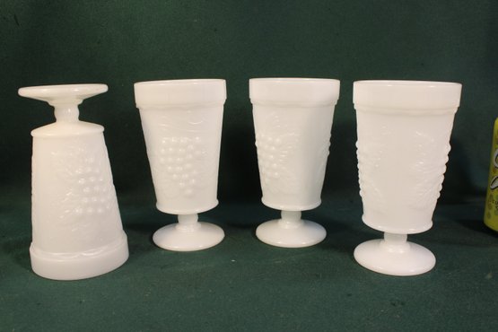 Vintage 4 White Pressed Glass 6"H Footed Tumblers (22)