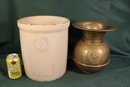 Vintage Brass Spittoon 9x10"H & Pacific Stoneware Co. 3 Gallon Crock, No Lid, 9x12"H (350)