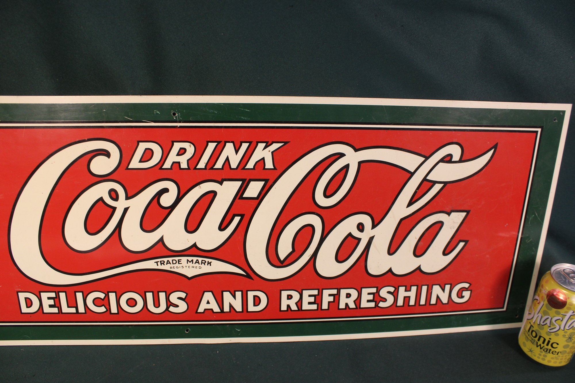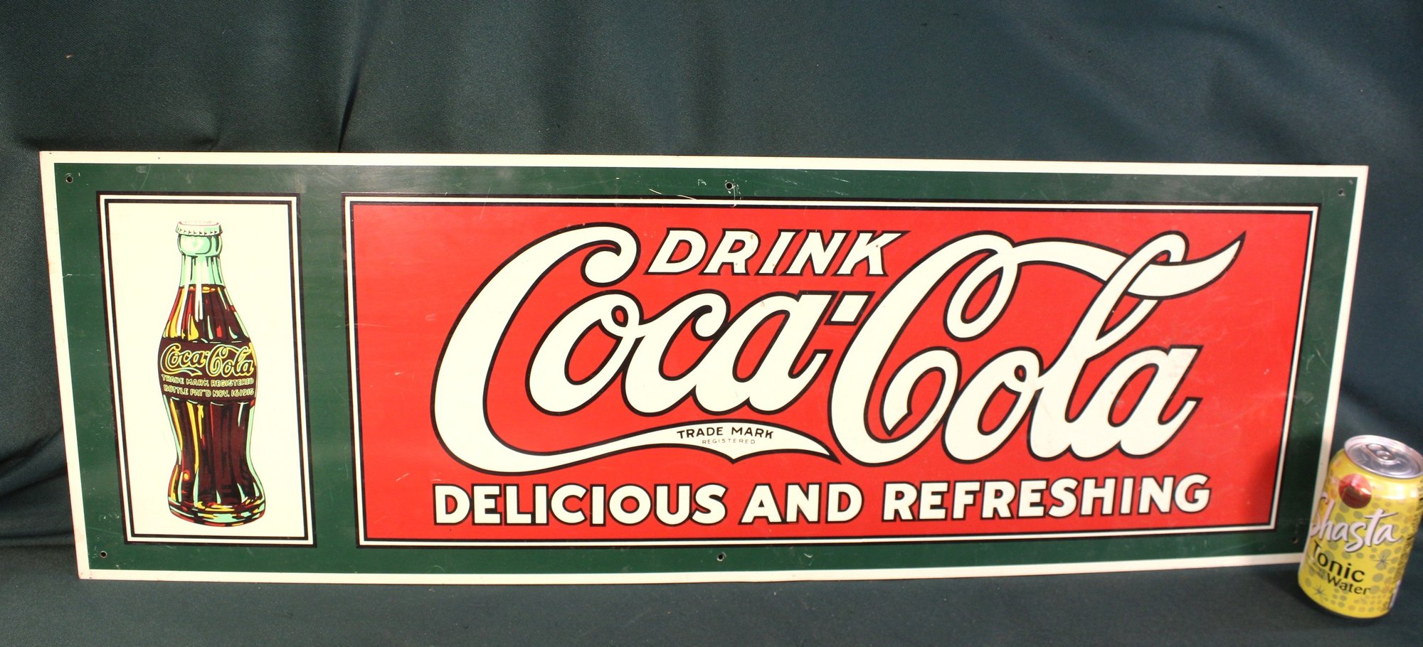 Vintage Coca Cola Metal (Porcelain?) Advertising Sign (Delicious & Refreshing), 36x12" (99)