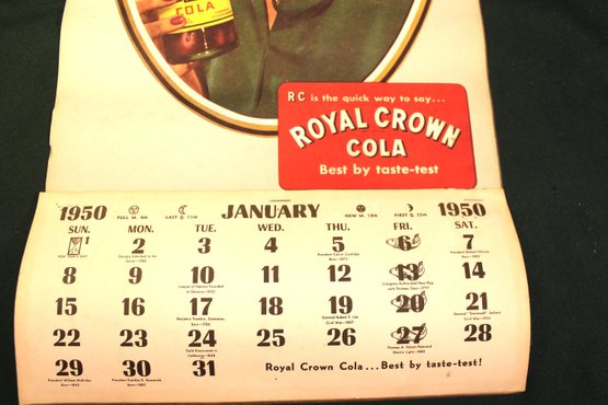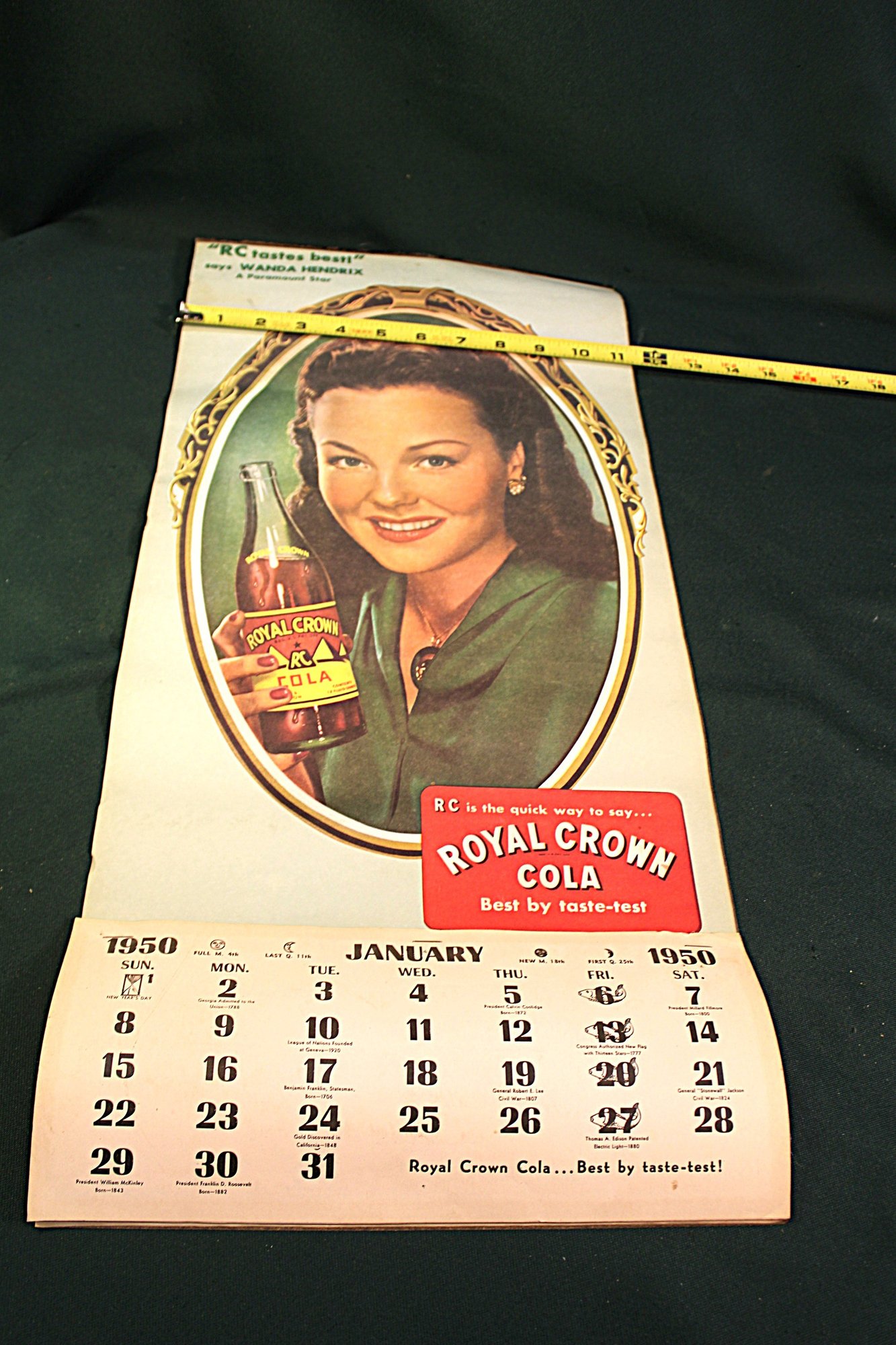 Vintage Complete RC Cola 1950 Advertising Calendar W/ Wanda Hendrix, 11x24" (66)
