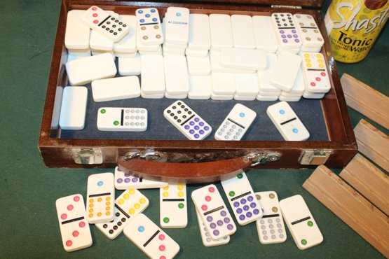 Vintage Dominos Game In Case W/wood Stands, 12x8" (162)