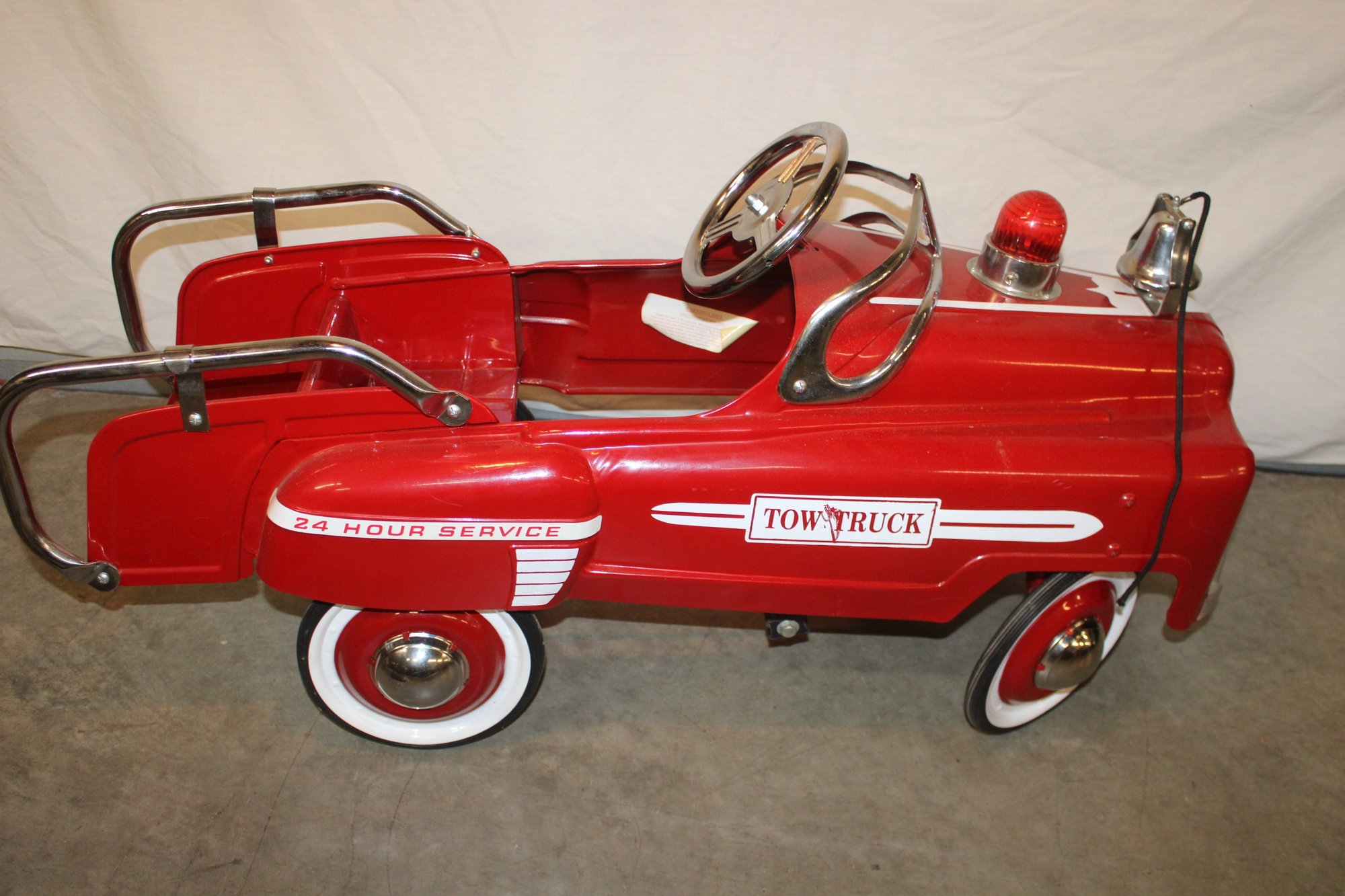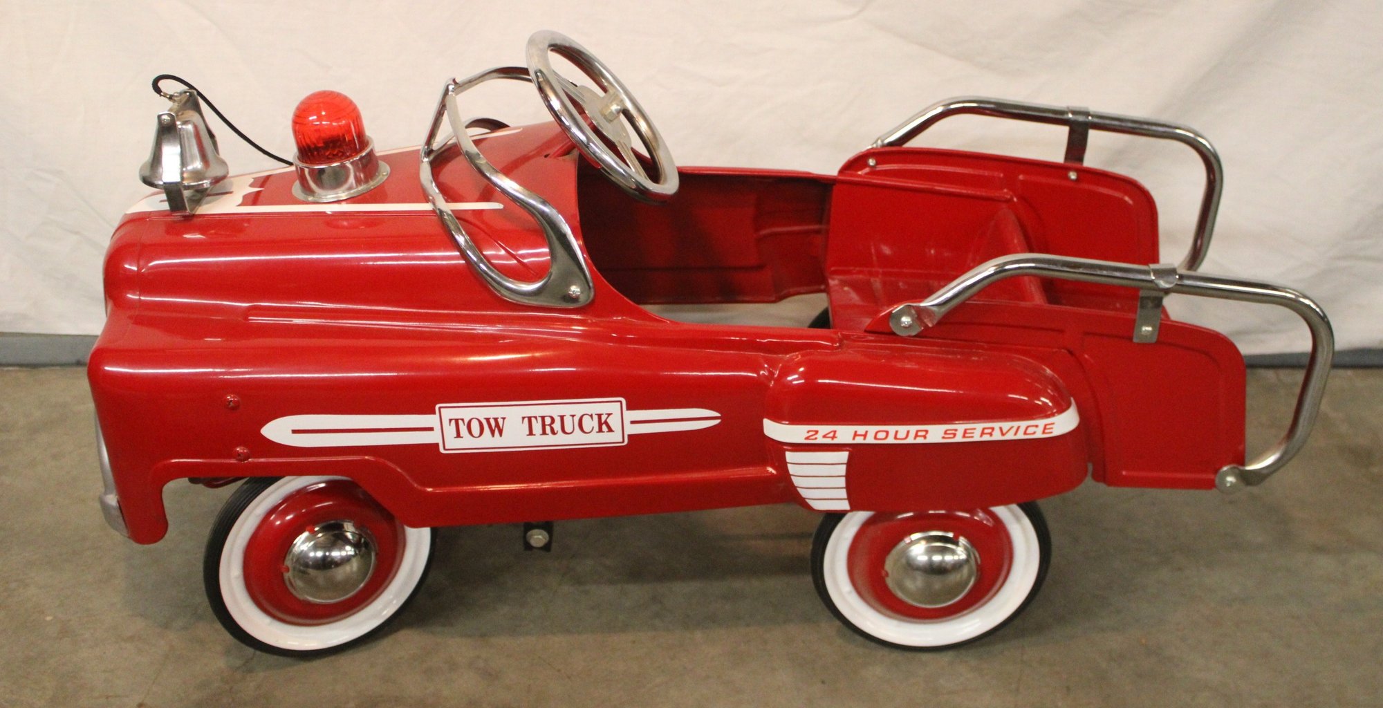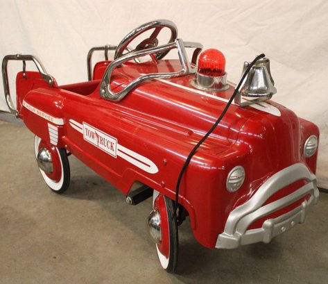 Vintage Red Tow Truck 24 Hour Service Pedal Car W/Flashing Light & Bell, 42" Long (347)