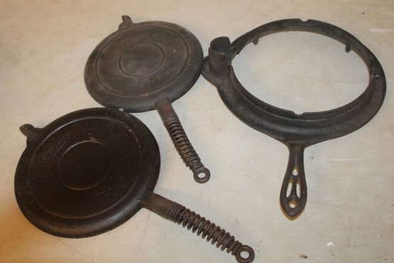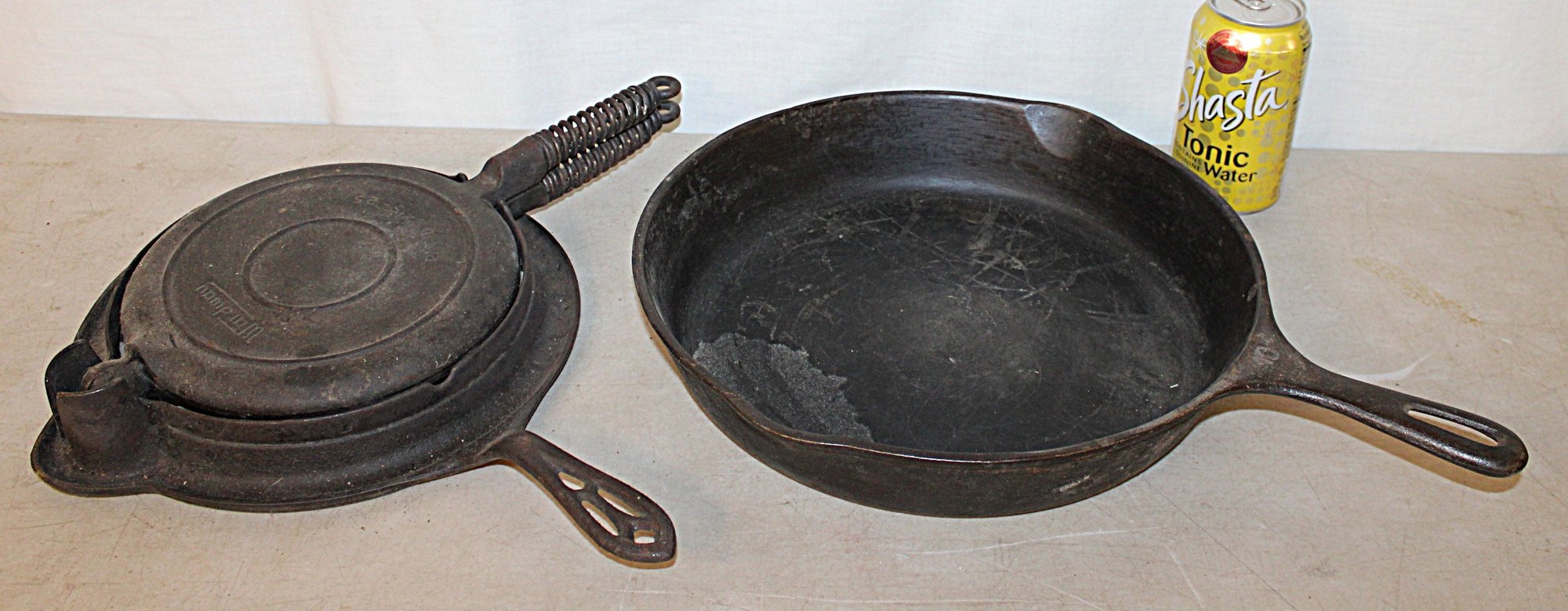 Wagner #10 Cast Iron Skillet & Wardway Cast Iron Waffle Iron (72)