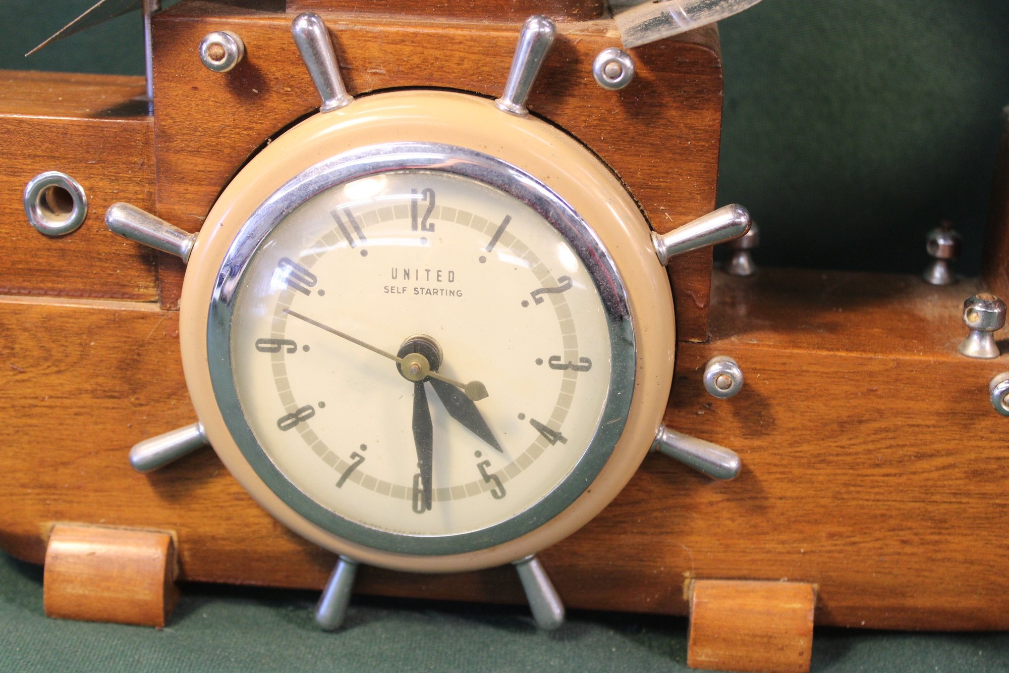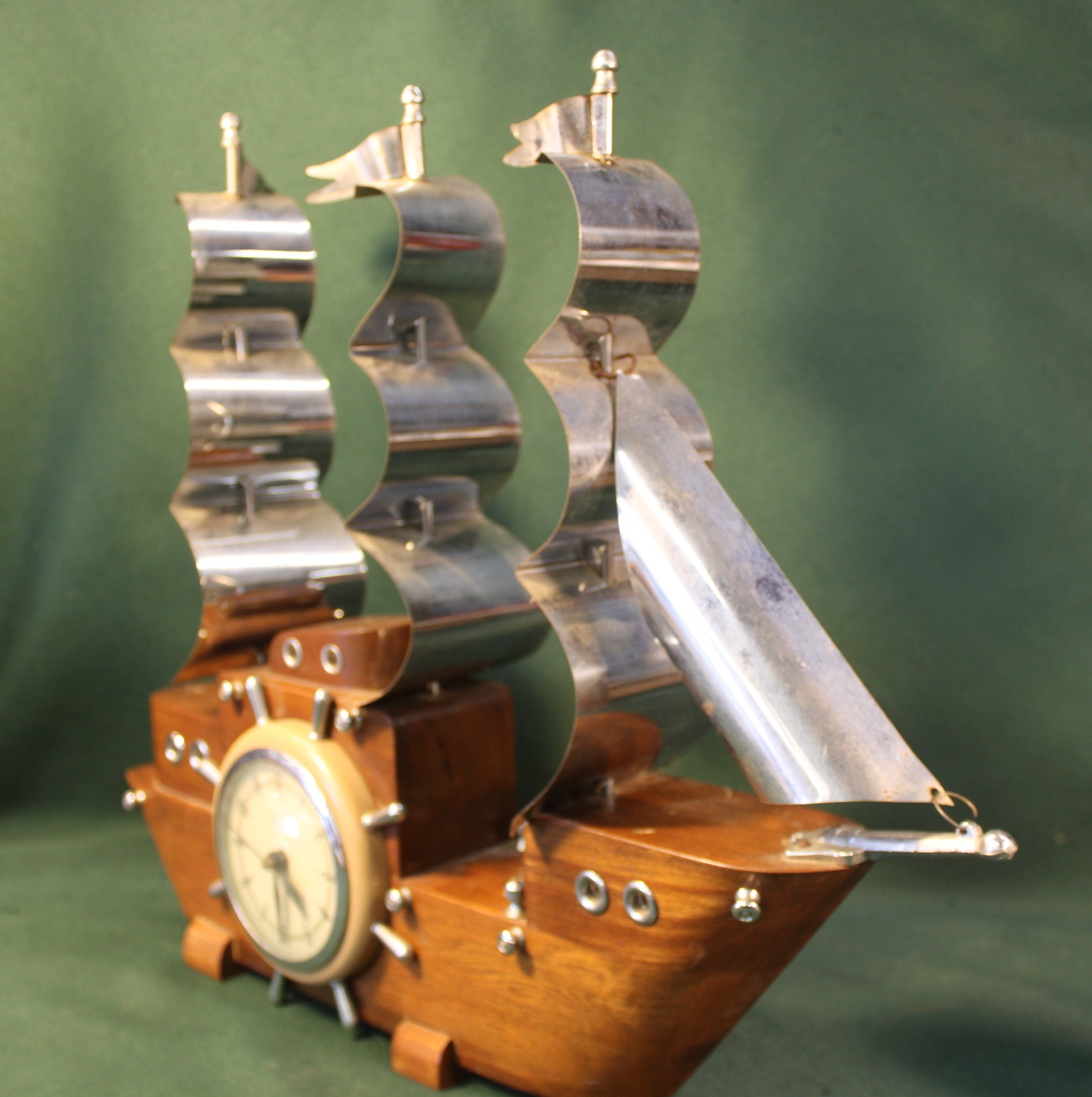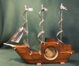 Wood & Metal Ship W/clock 19x16"H, Clock Is Not Working (129)