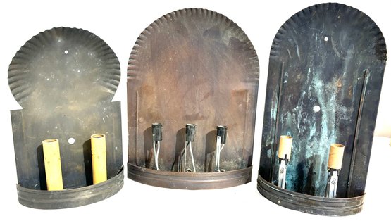 Solid copper and brass sconces. Reproduction (Need to be rewired) Approx. 13 -14" tall.