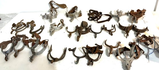 Impressive collection of cowboy spurs. Various sizes. Most fit a mens boot.