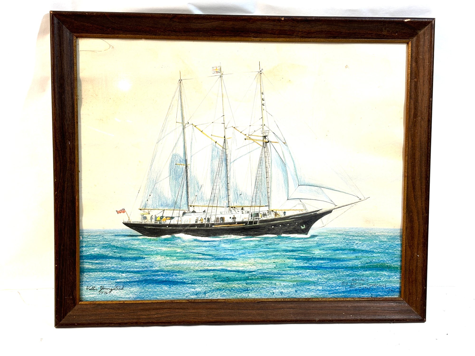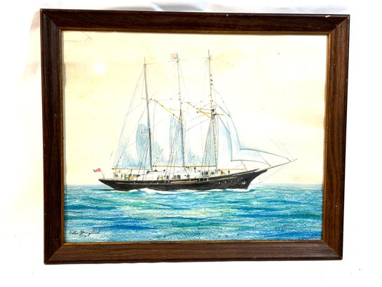 Vintage Framed Painting - Ship - Walter Youngstead 1976