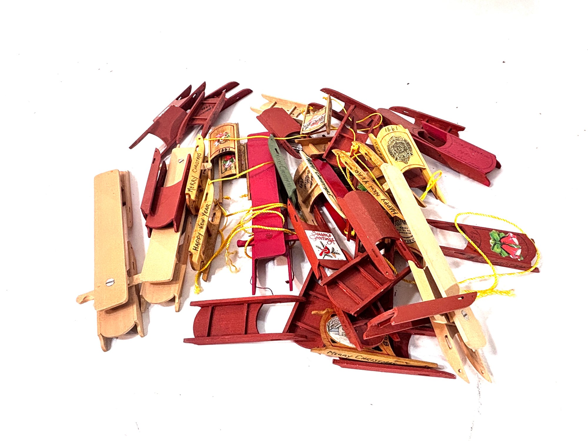 Vintage Wood Christmas Sleigh Ornaments