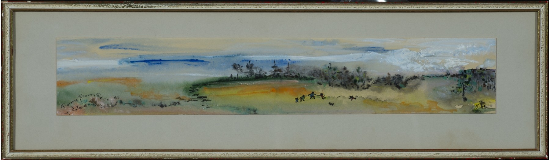 Watercolor and gouache on paper, framed