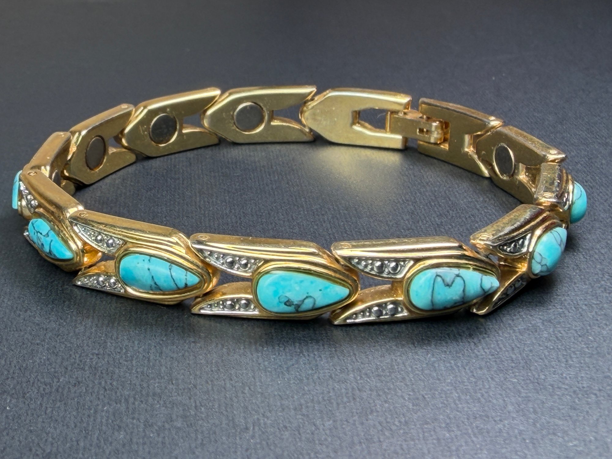 928 Jewelry Company Oasis Green & Turquoise Stone Marquise Link Bracelet