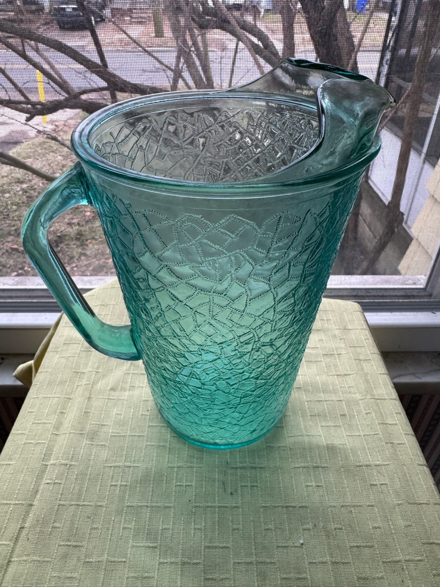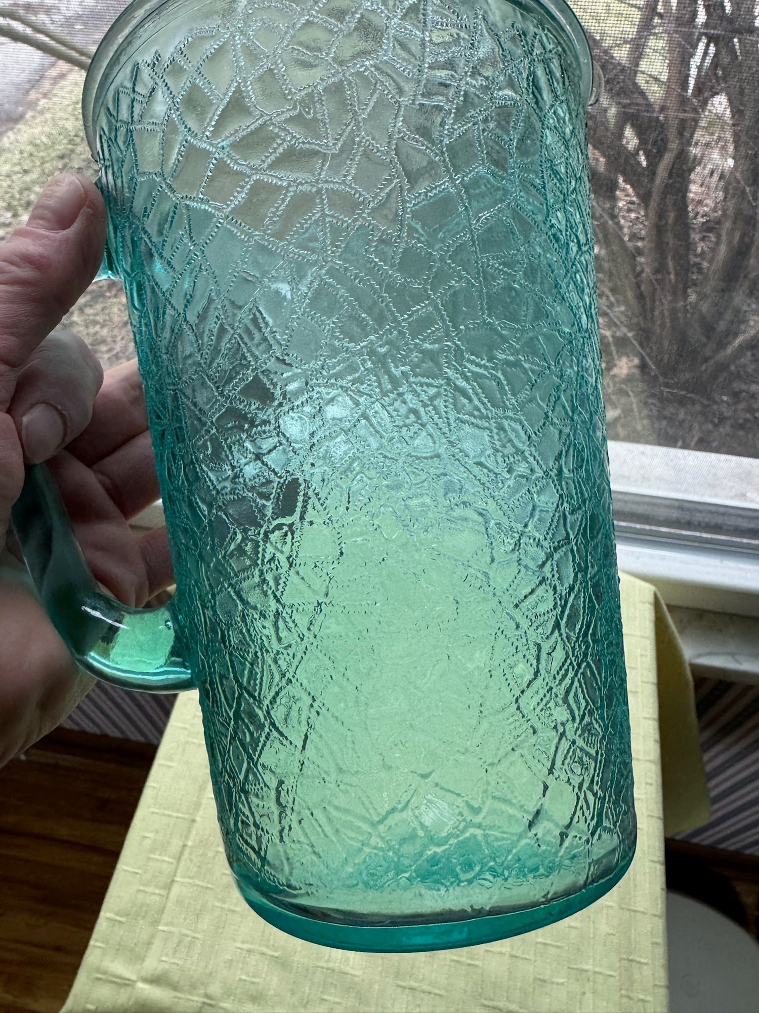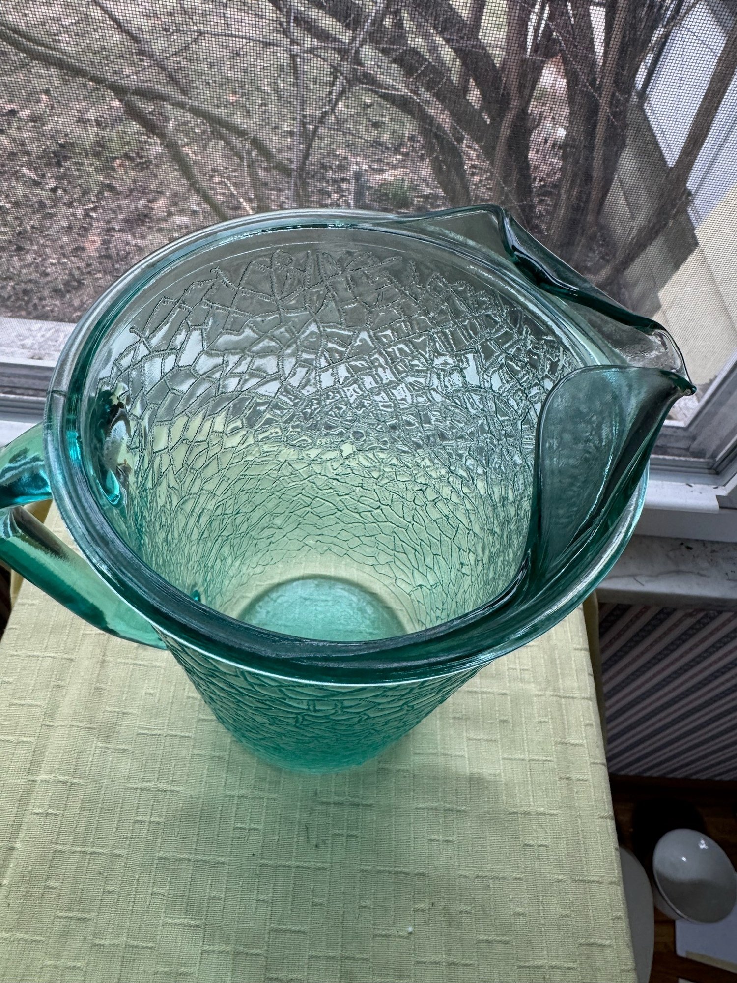 Amazing Vintage Teal Blue Glass Crackle Pitcher