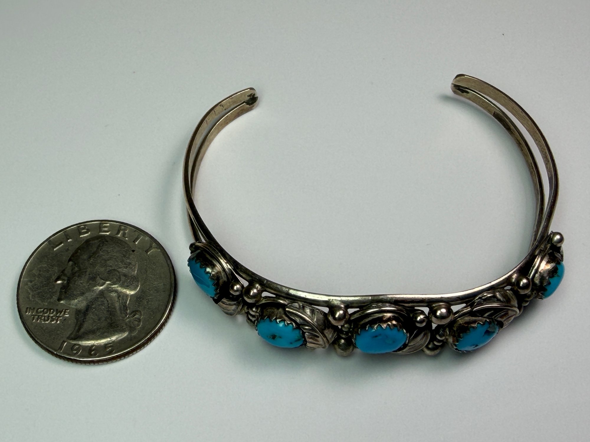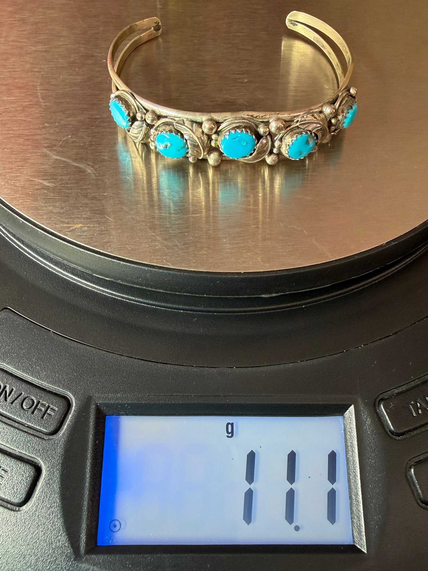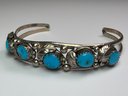 American Navajo Turquoise And Sterling Silver Cuff Bracelet 11.1 Grams