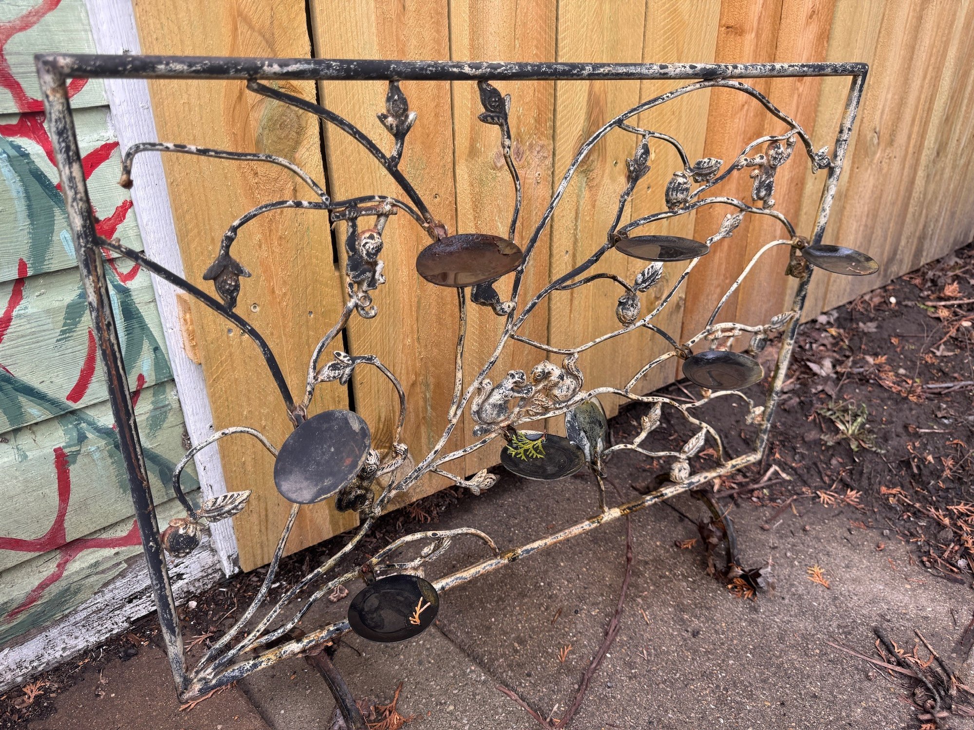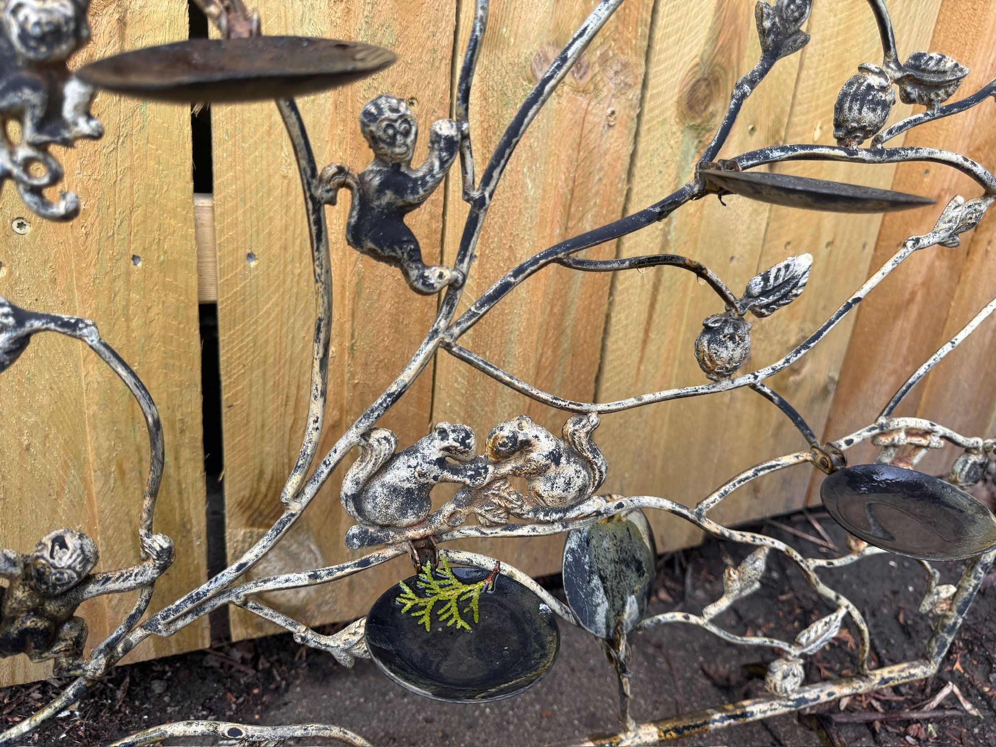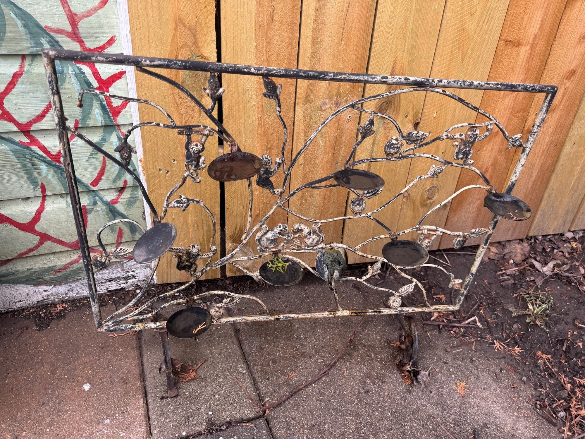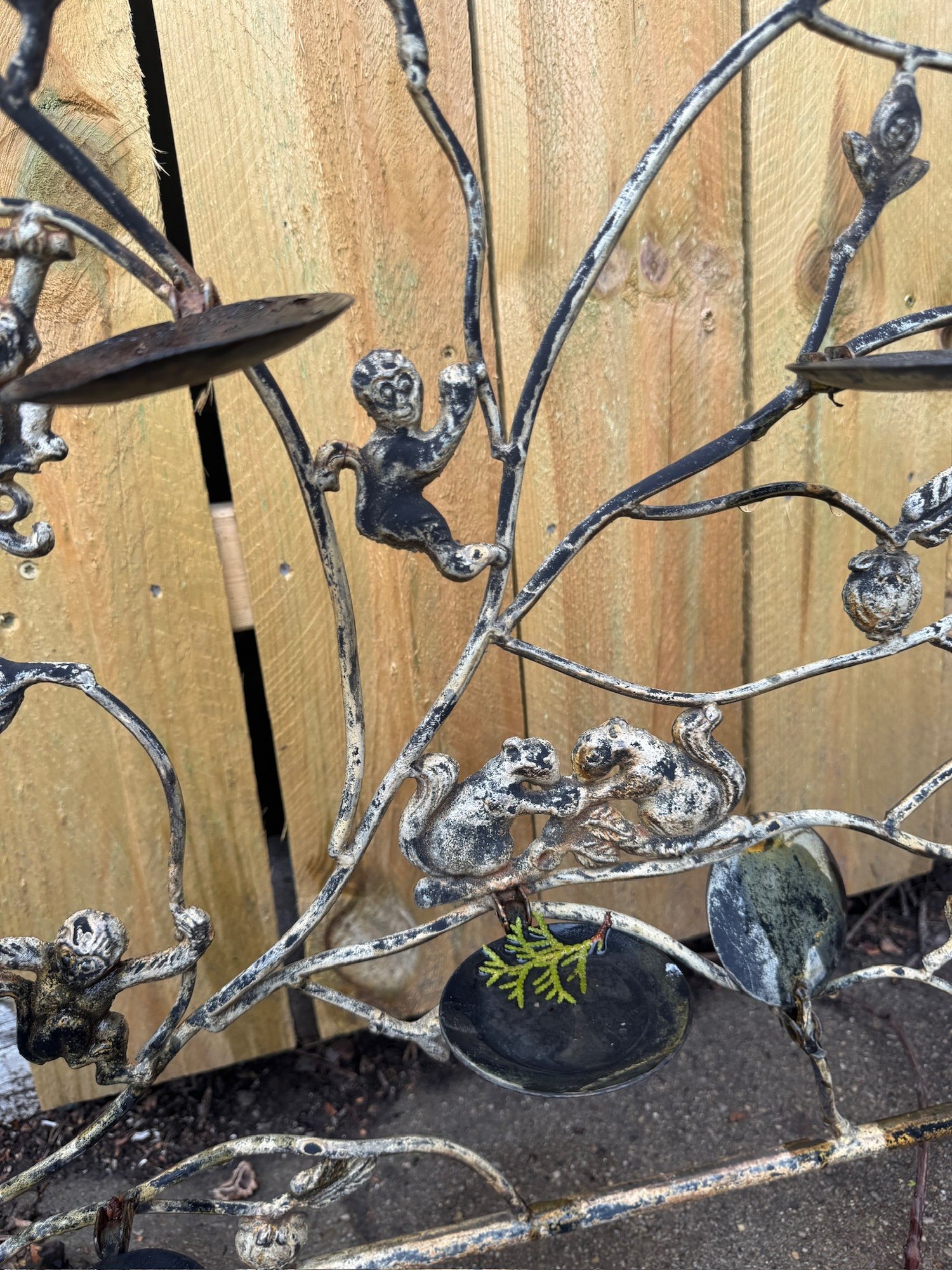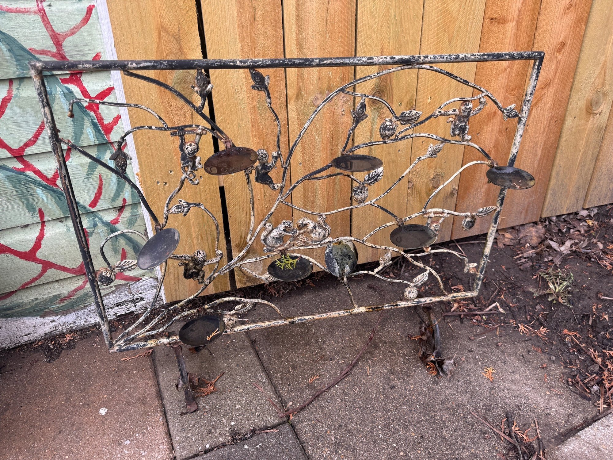 Antique India Diya Puja Candle Holder Iron Hand Forged Monkey In Diwali