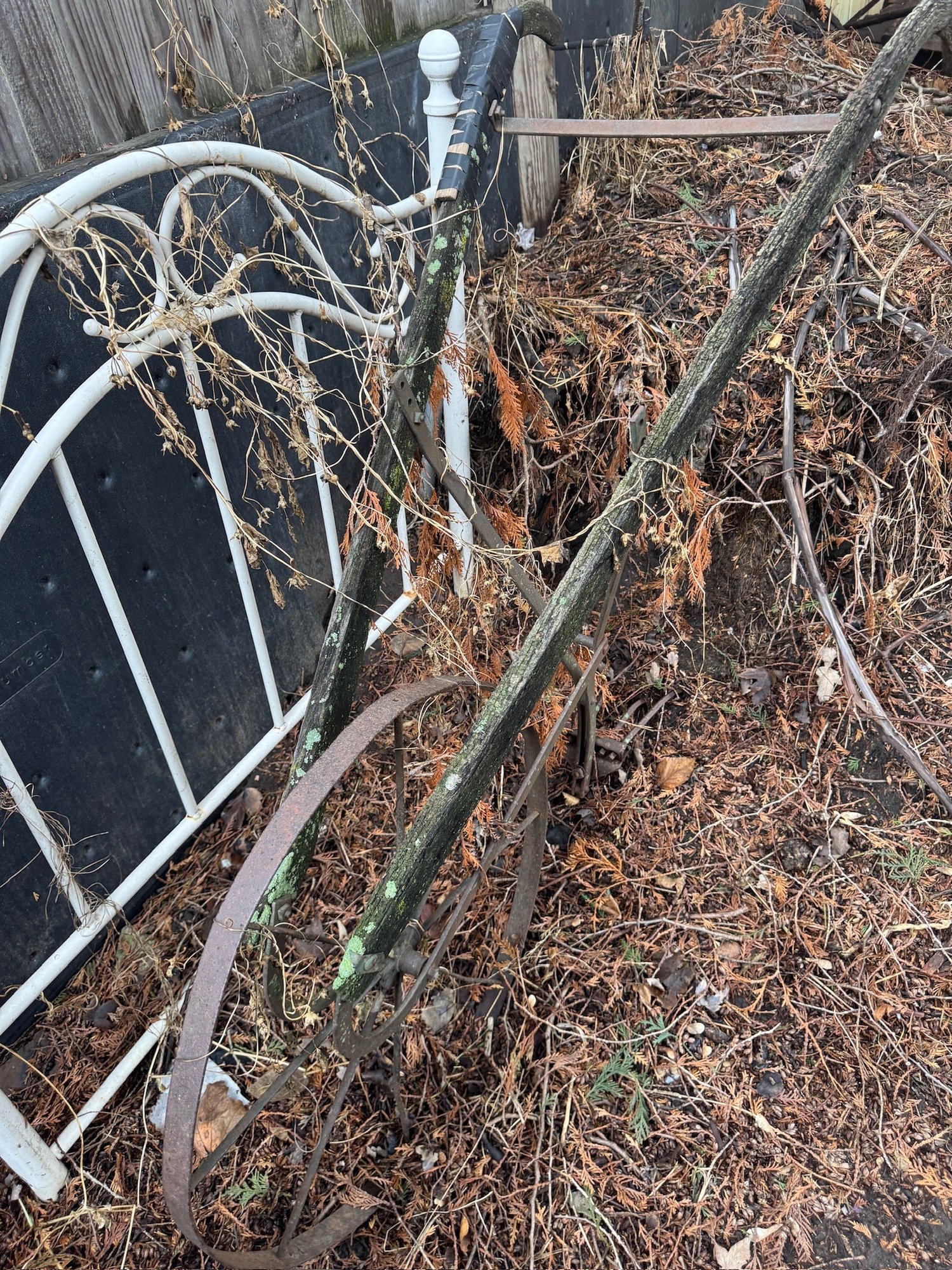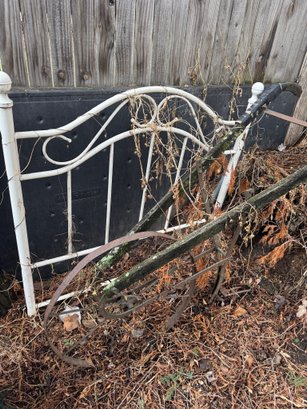 Antique Plow And Small Metal Headboard For Garden
