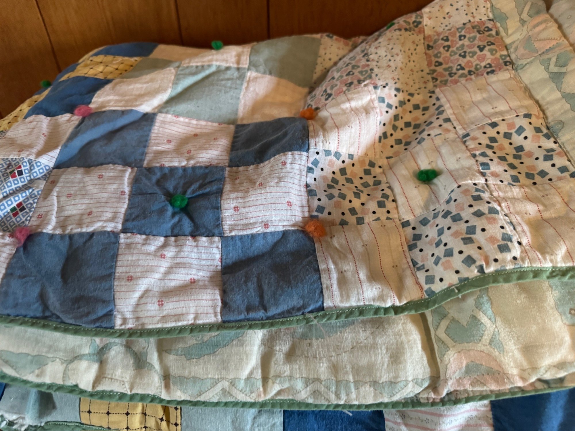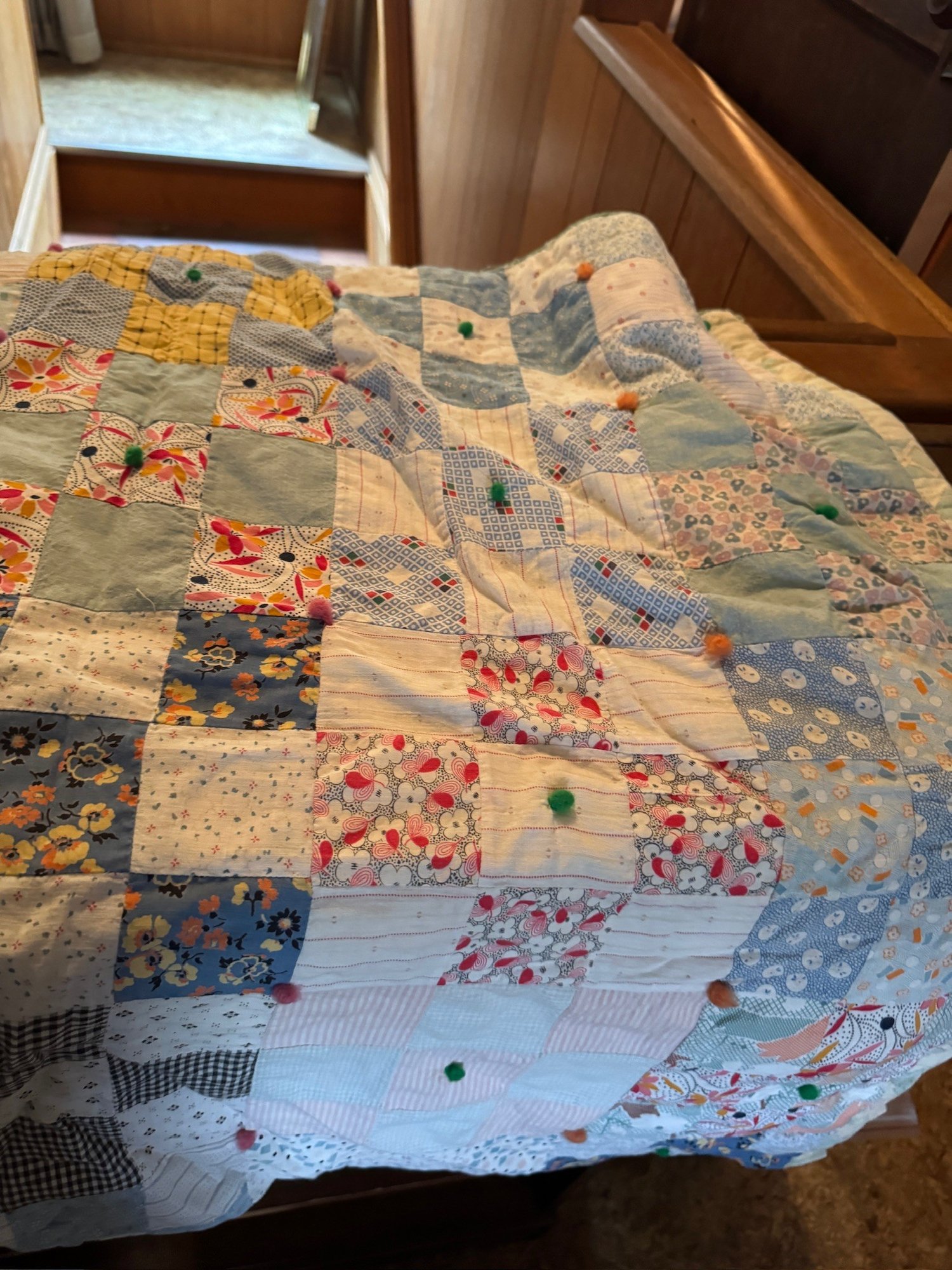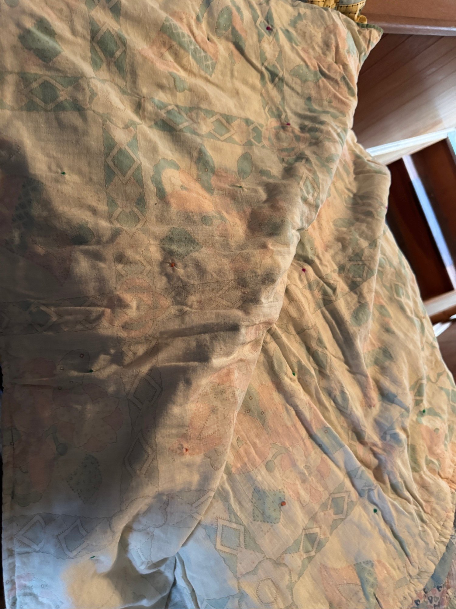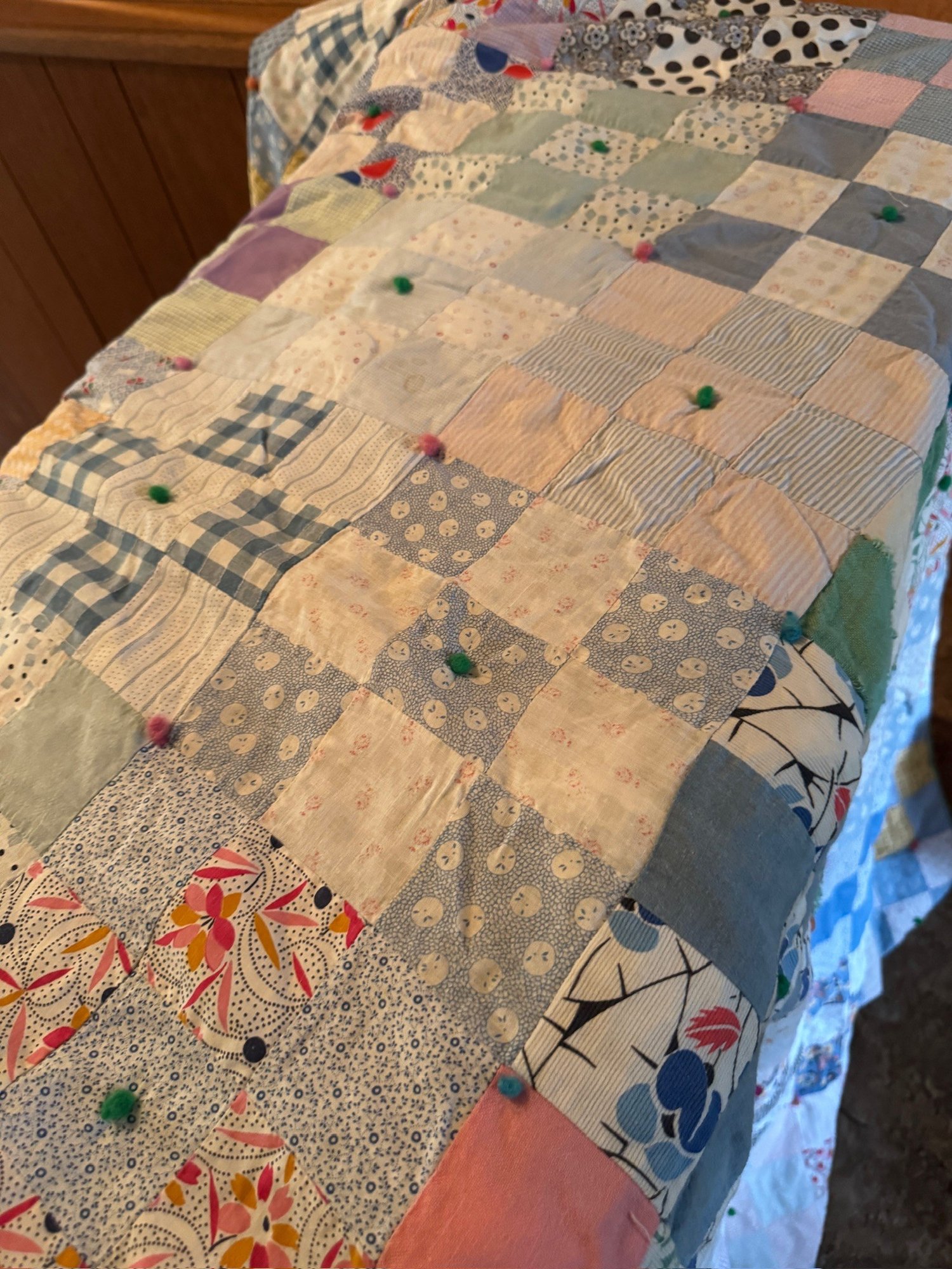 Please note that this beautiful vintage handmade quilt does have some balling to the inside lining of the quilt. Just noted for a complete accuracy, still warm cozy and perfect for your collection!