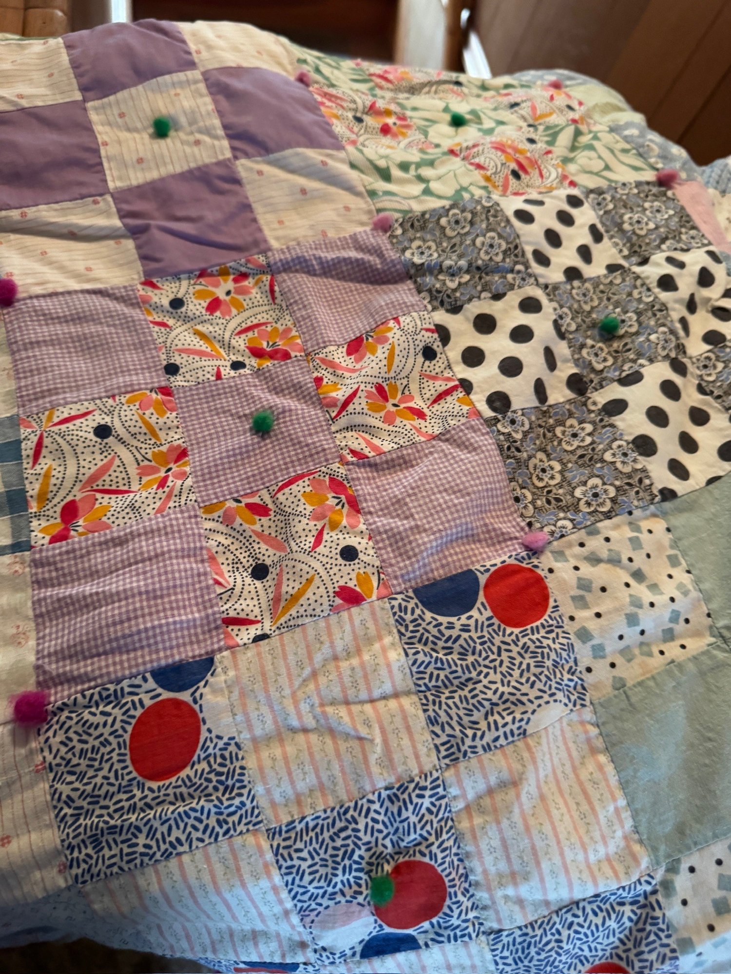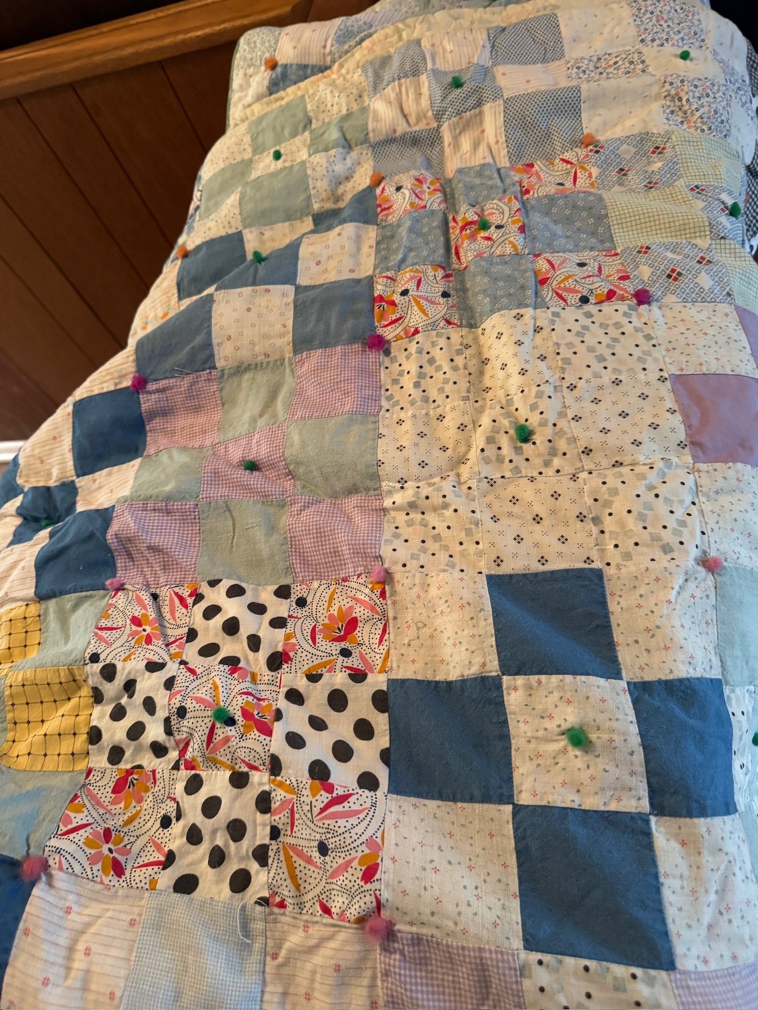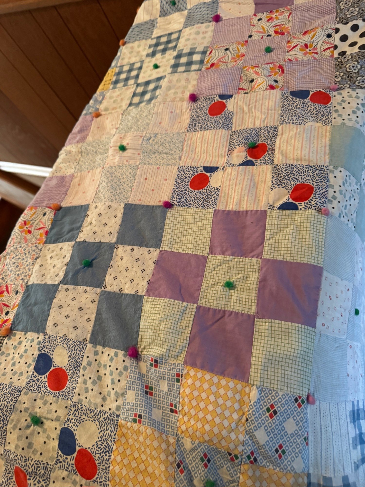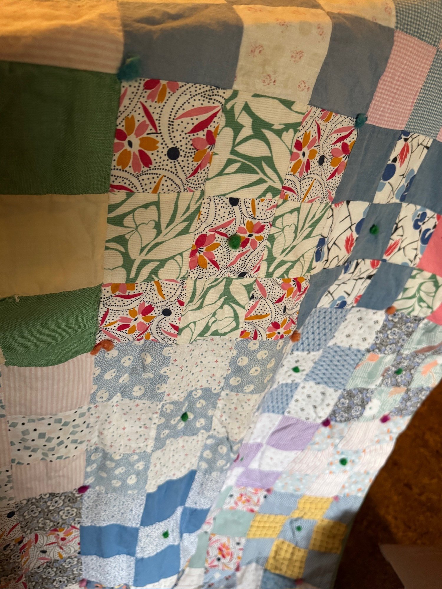 Please note that this beautiful vintage handmade quilt does have some balling to the inside lining of the quilt. Just noted for a complete accuracy, still warm cozy and perfect for your collection!