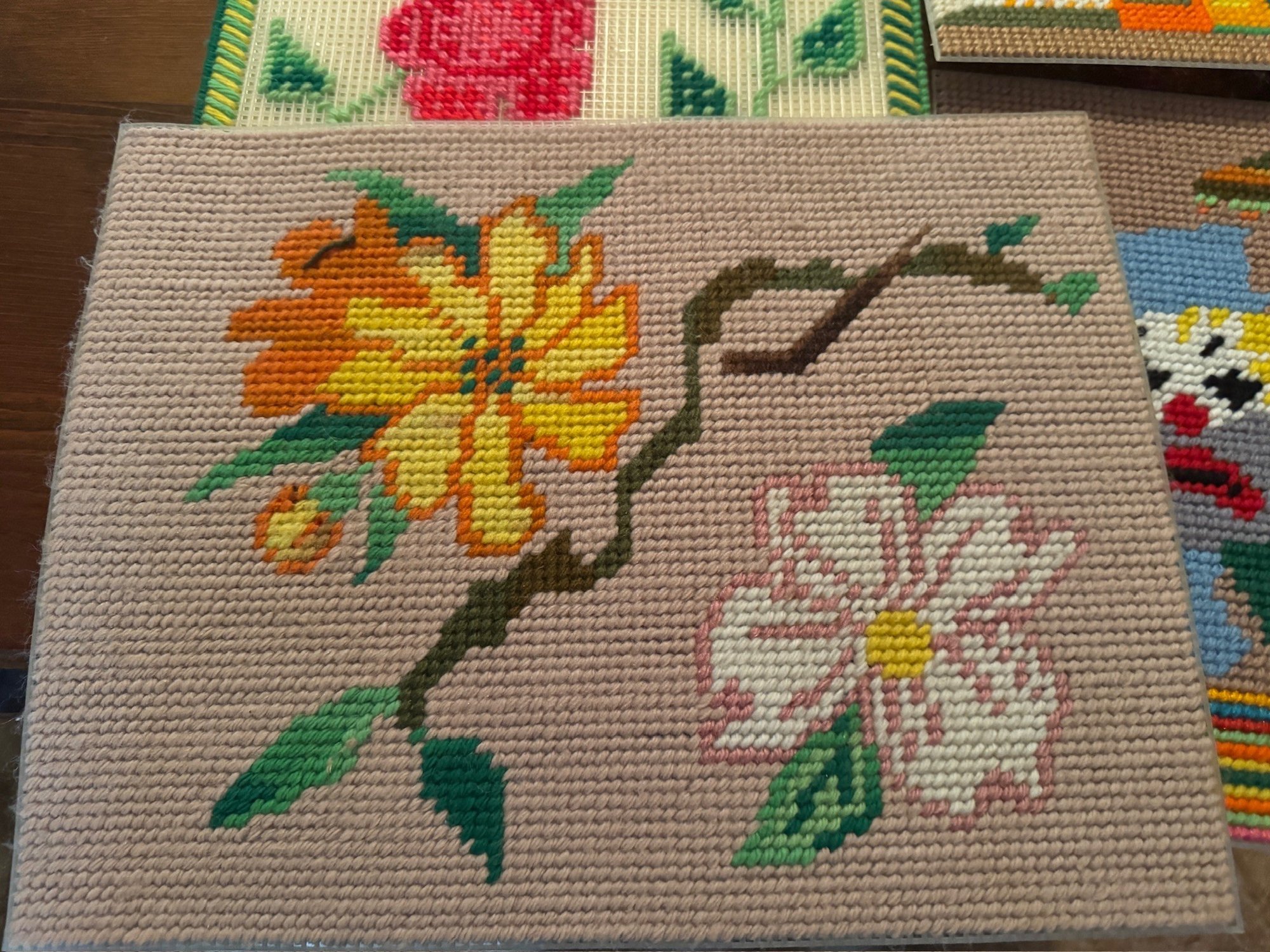 Lot Of Four Handmade Vintage Needlepoint Art Pictures