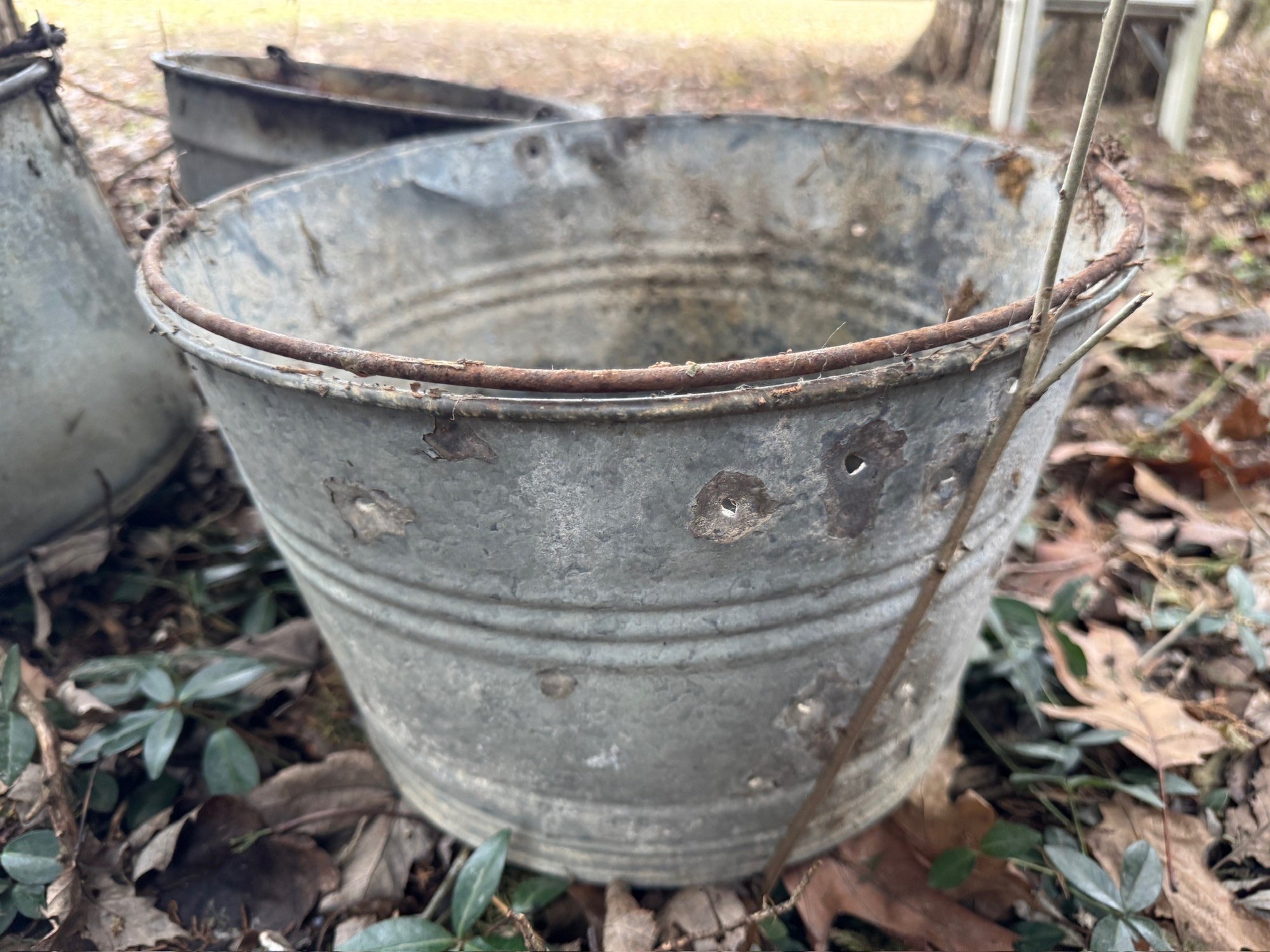Lot of galvanized buckets! Please note these may have some areas of corrosion making holes in base. Please, as always, carefully review photos.
