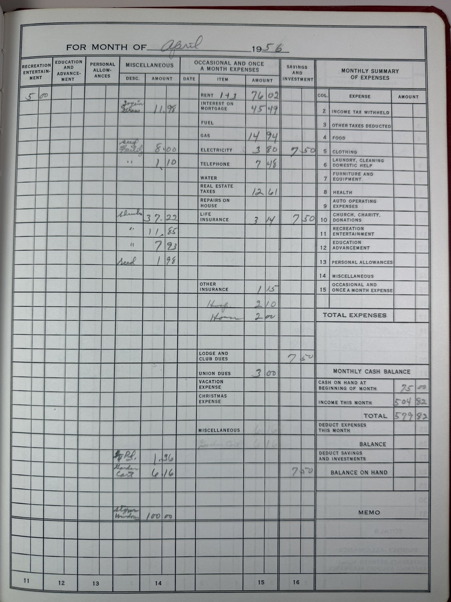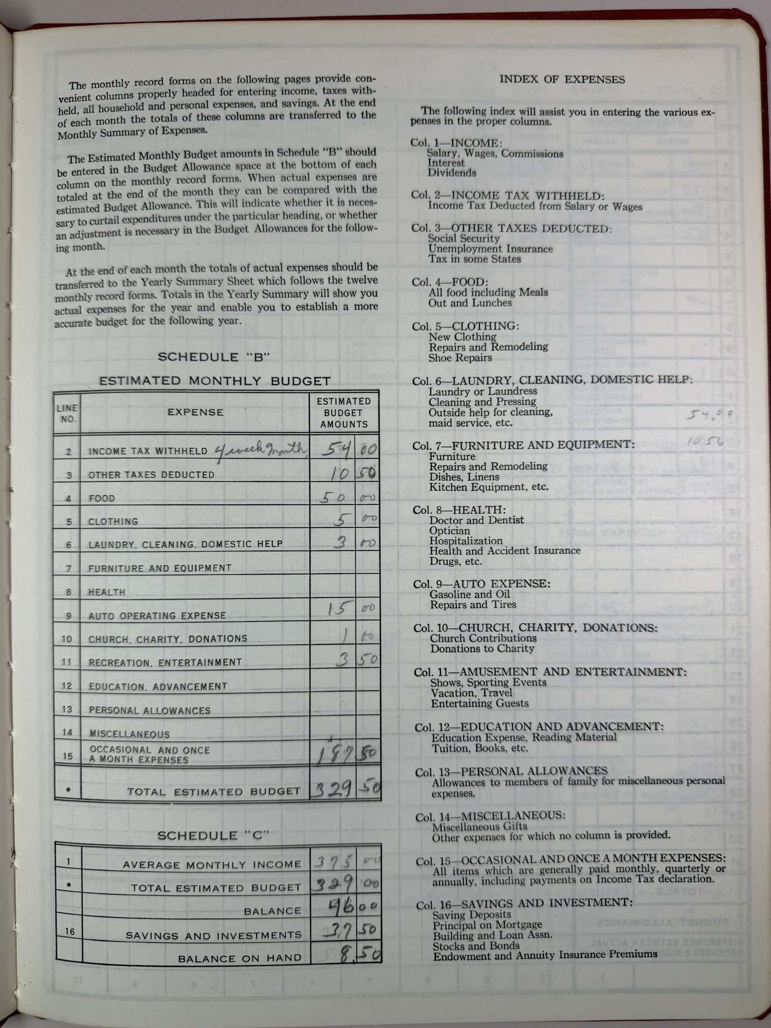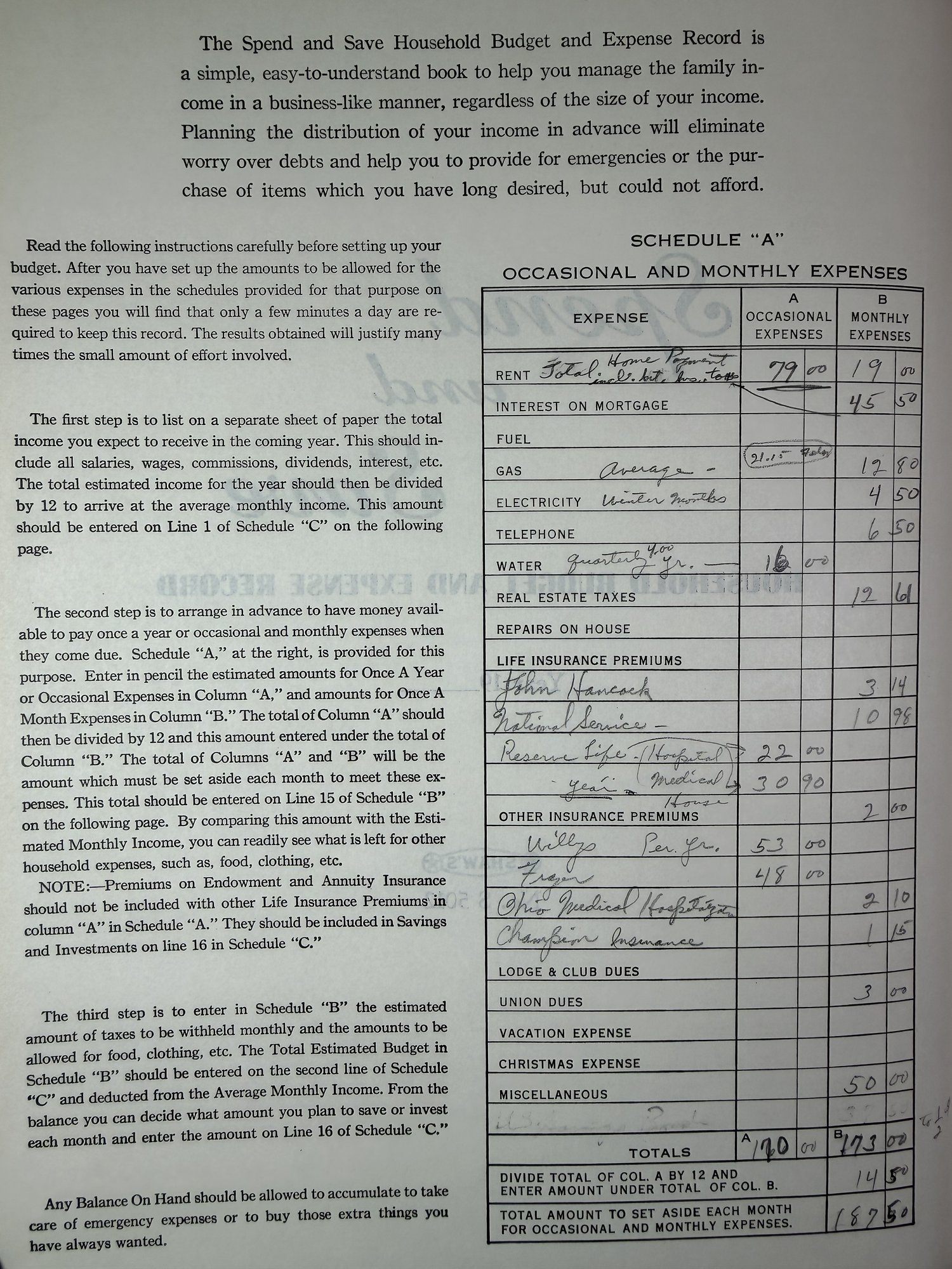 Spend And Save Vintage Household Budget Book