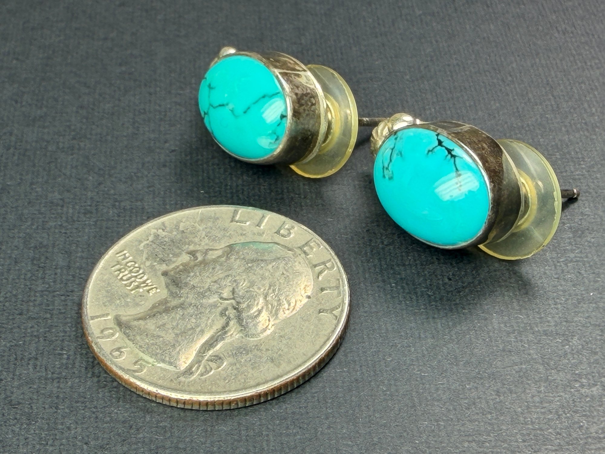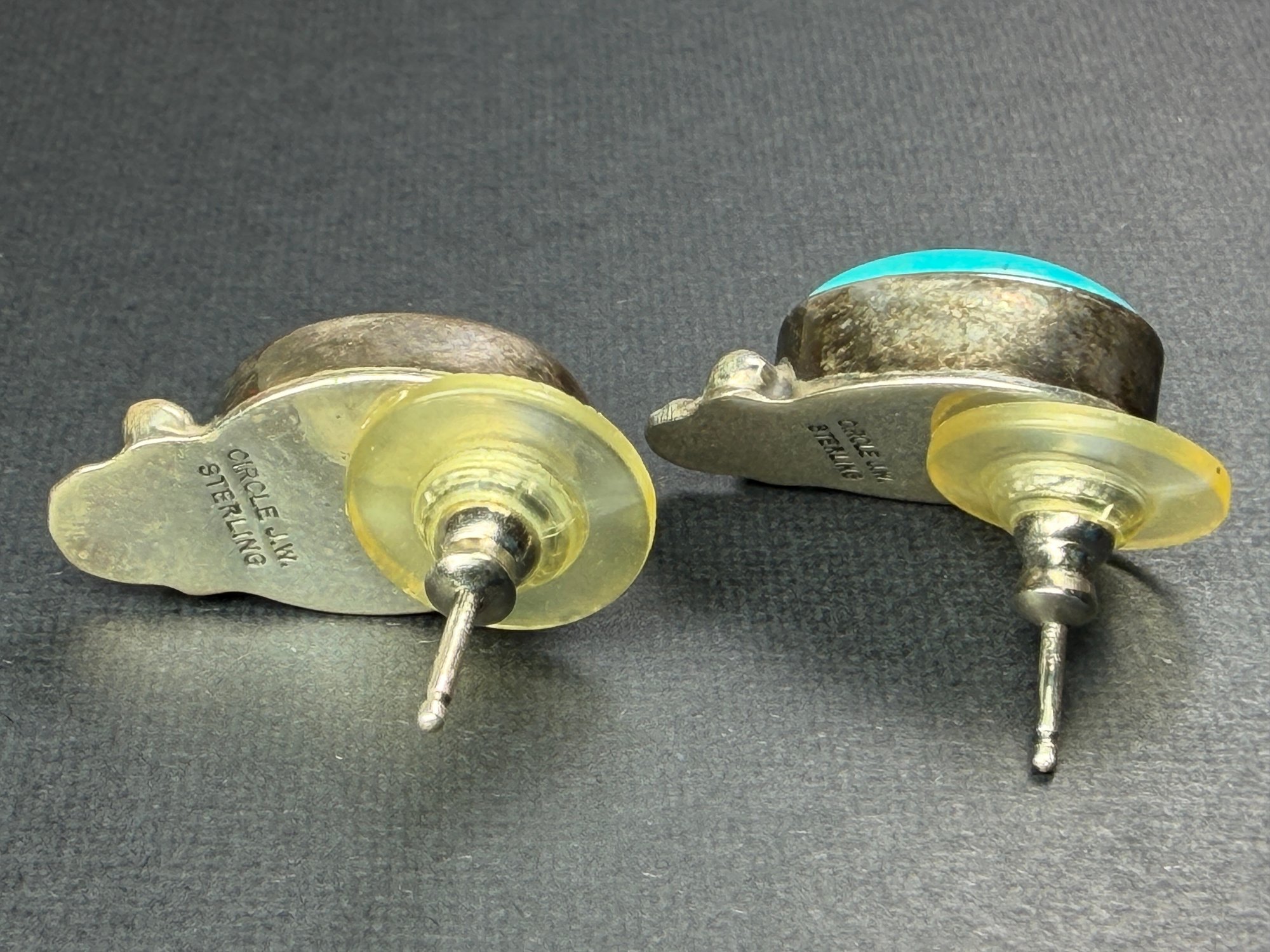 Turquoise & 925 Sterling Silver Earrings Circle J. W.