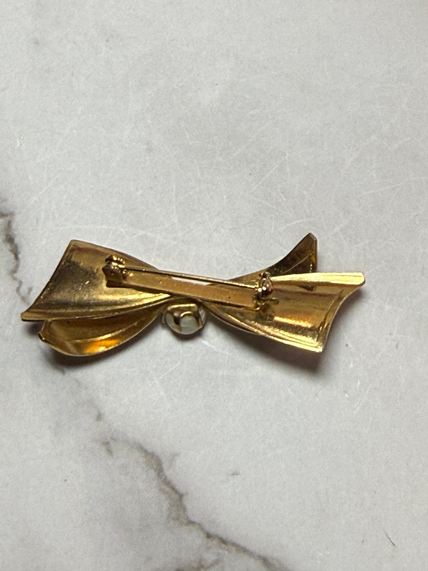 Vintage Bow And Faux Pearl Brooch Pin